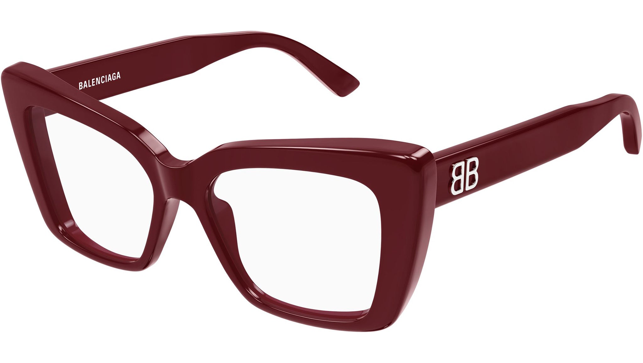 Occhiali da vista Balenciaga BB0297O 007 donna con montatura butterfly in acetato riciclato rosso solido lucido e lenti demo. Linea: Everyday. Codice modello: BB0297O. Codice colore: 007. Made in Italy. Rivenditore autorizzato Balenciaga online. Gli occhiali vengono consegnati con custodia e accessori originali e sono coperti dalla garanzia ufficiale di 12 mesi del produttore.