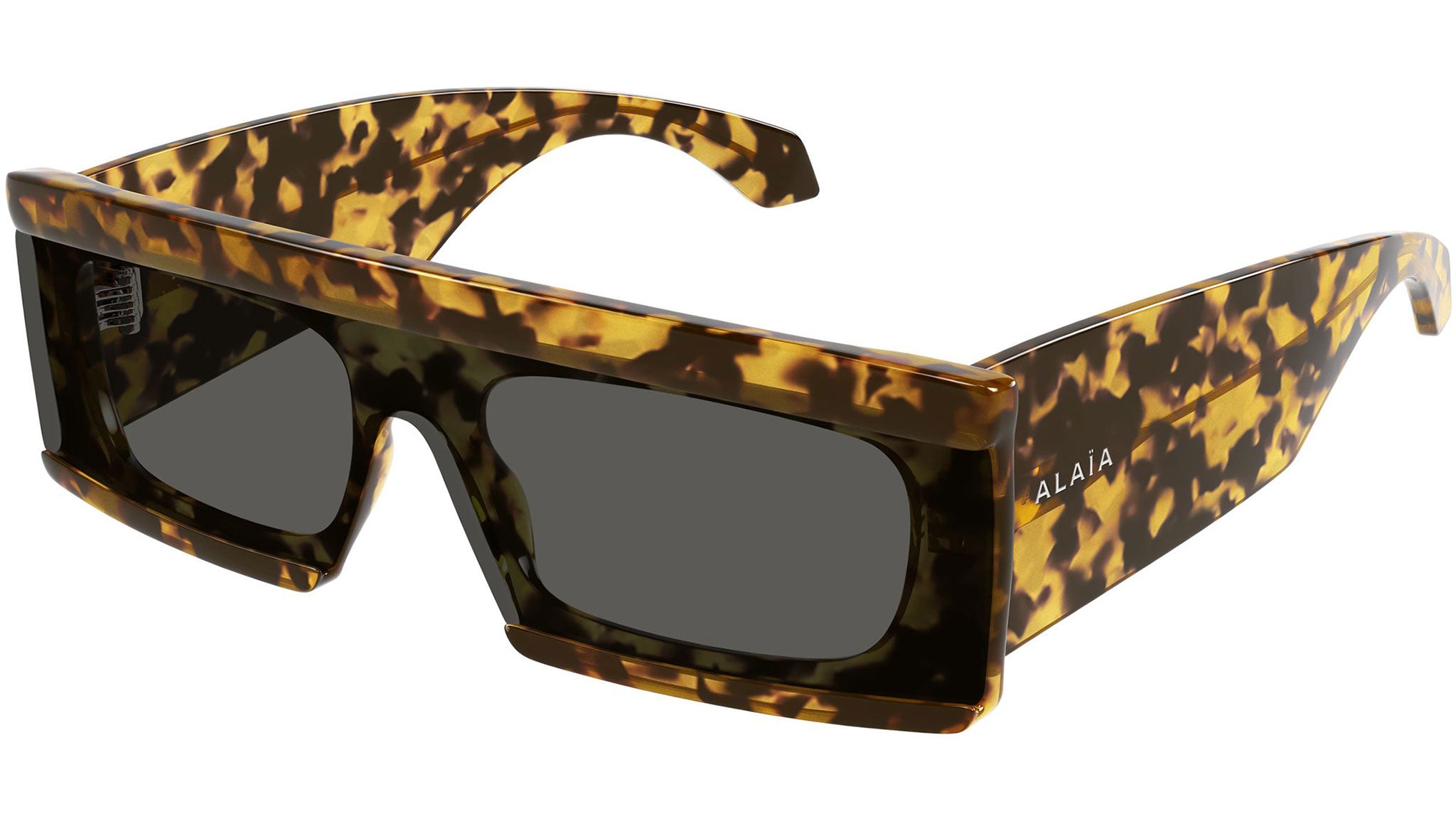Occhiali da sole Azzedine Alaïa AA0099S 003 donna con montatura rettangolare in acetato riciclato giallo avana maculato lucido e lenti grigio mask tinta unita. Linea: Azzedine Alaïa. Codice modello: AA0099S. Codice colore: 003. Made in Italy. Rivenditore autorizzato Azzedine Alaïa online. Gli occhiali vengono consegnati con custodia e accessori originali e sono coperti dalla garanzia ufficiale di 12 mesi del produttore.
