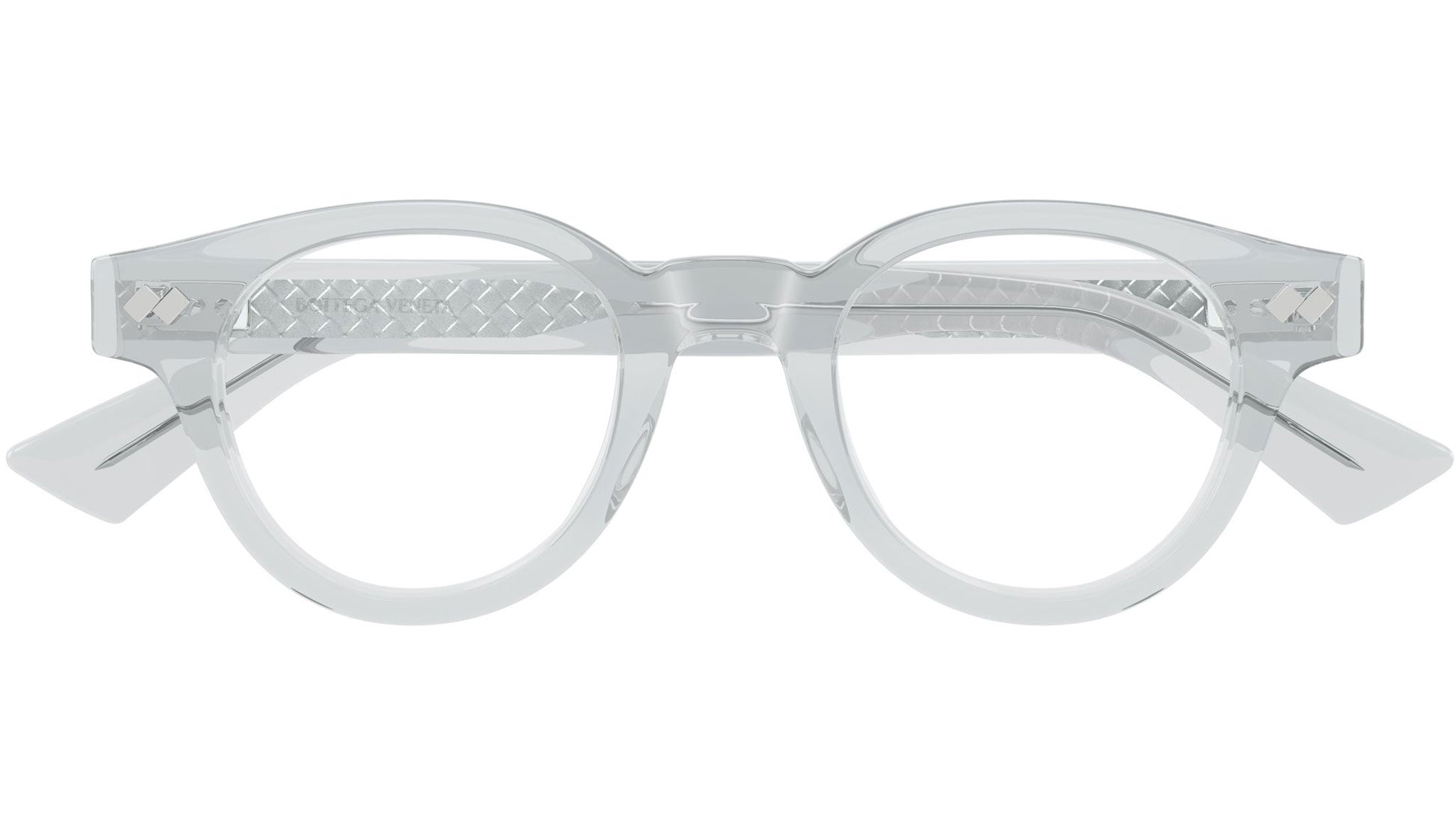 Occhiali da vista Bottega Veneta BV1443O 003 unisex con montatura pantos in acetato riciclato grigio chiaro trasparente lucido e lenti demo. Linea: Intrecciato. Codice modello: BV1443O. Codice colore: 003. Made in Japan. Rivenditore autorizzato Bottega Veneta online. Gli occhiali vengono consegnati con custodia e accessori originali e sono coperti dalla garanzia ufficiale di 12 mesi del produttore.