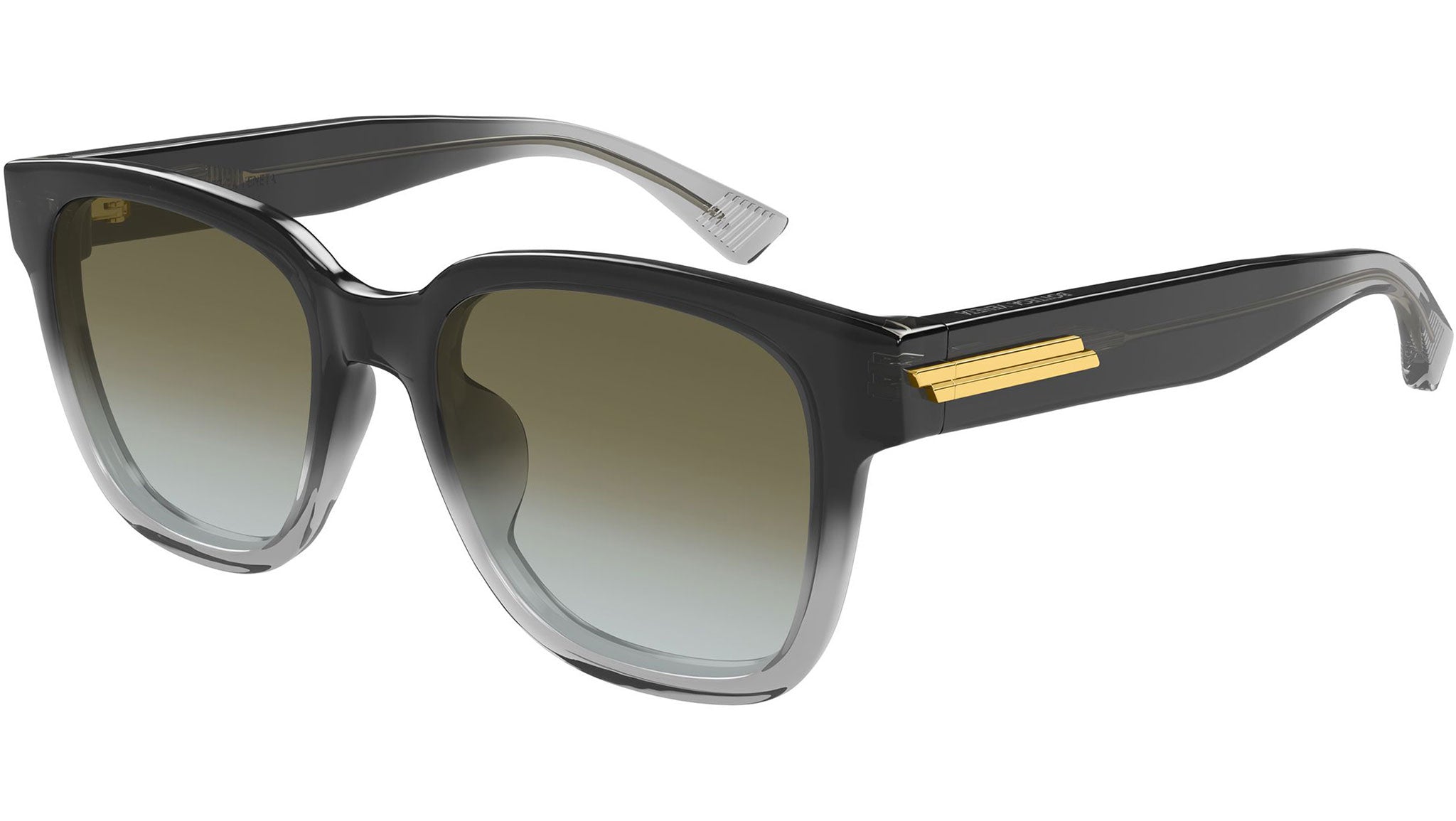 Occhiali da sole Bottega Veneta BV1461SK 003 uomo con montatura rettangolare in acetato riciclato grigio scuro trasparente lucido sfumato a grigio chiaro trasparente e lenti marrone doppia sfumatura / blu. Linea: Ribbon. Codice modello: BV1461SK. Codice colore: 003. Made in Japan. Rivenditore autorizzato Bottega Veneta online. Gli occhiali vengono consegnati con custodia e accessori originali e sono coperti dalla garanzia ufficiale di 12 mesi del produttore.