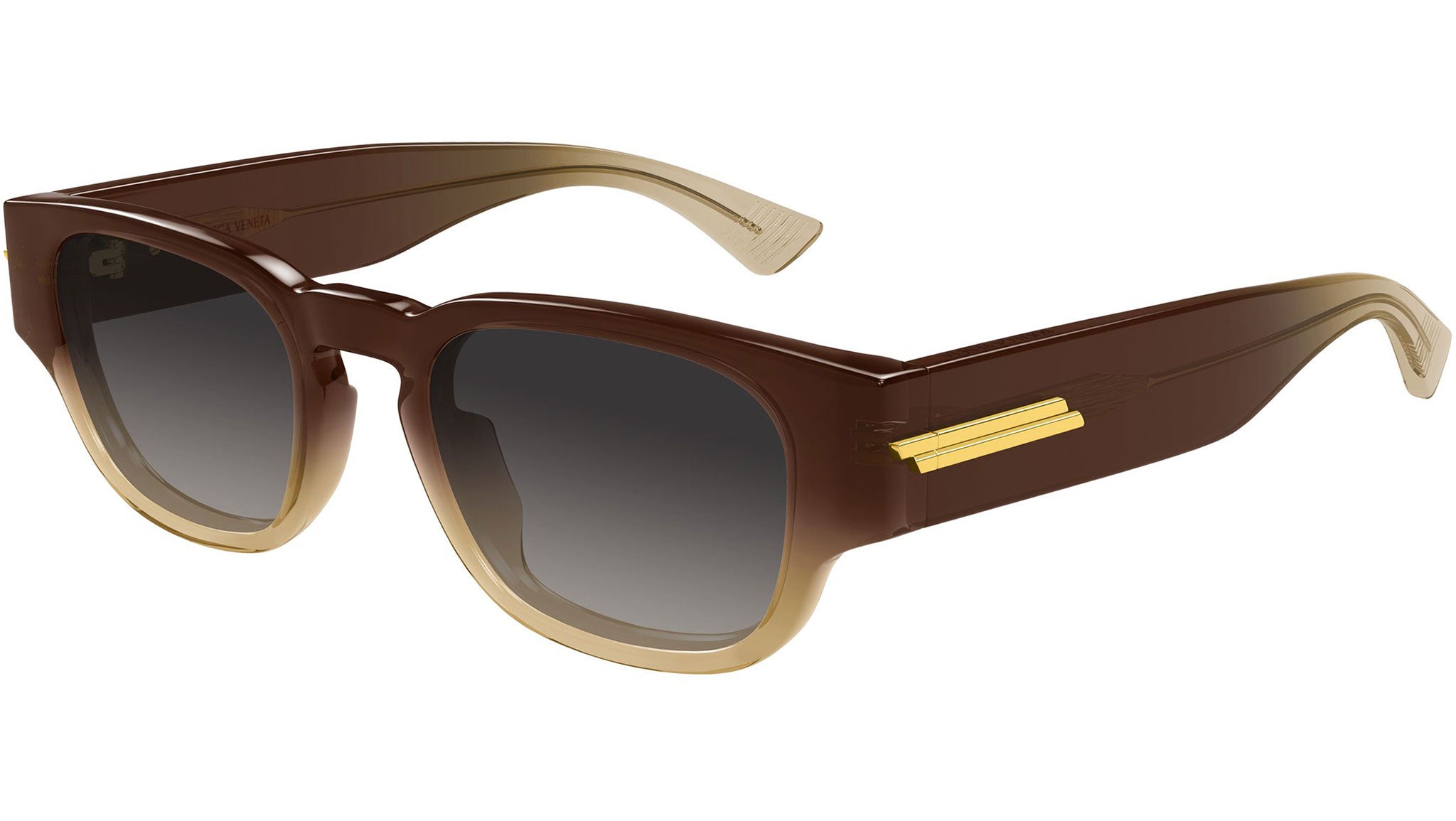 Occhiali da sole Bottega Veneta BV1460S 003 uomo con montatura pantos in acetato riciclato miele trasparente lucido sfumato a arancione chiaro trasparente e lenti grigio sfumato. Linea: Ribbon. Codice modello: BV1460S. Codice colore: 003. Made in Japan. Rivenditore autorizzato Bottega Veneta online. Gli occhiali vengono consegnati con custodia e accessori originali e sono coperti dalla garanzia ufficiale di 12 mesi del produttore.