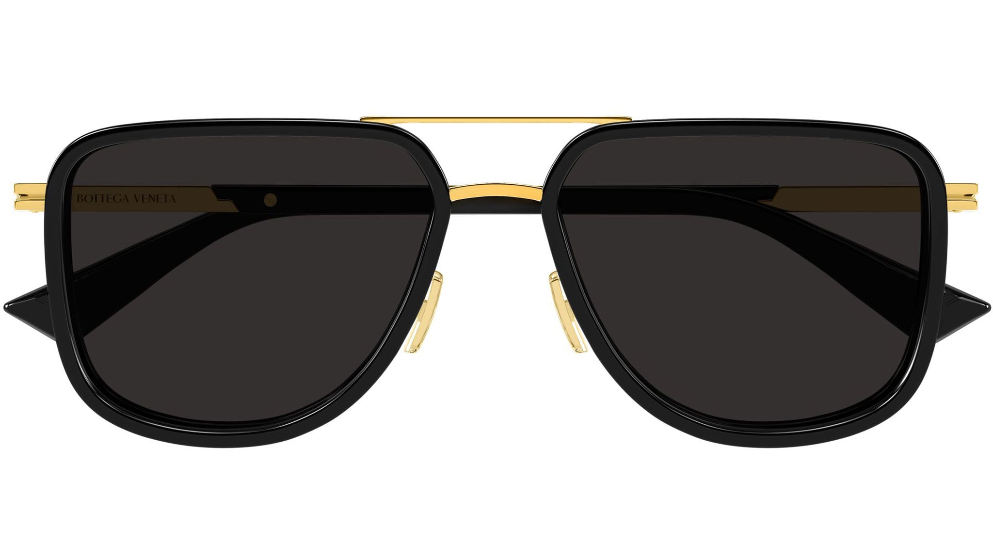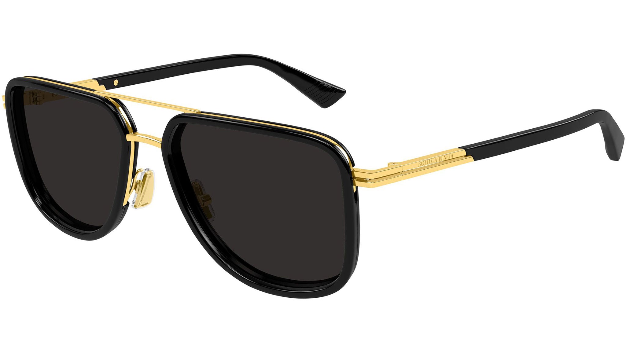 Occhiali da sole Bottega Veneta BV1463S 001 uomo con montatura aviatore in metallo oro lucido con cerchi neri solido lucidi e lenti grigio tinta unita. Linea: Ribbon. Codice modello: BV1463S. Codice colore: 001. Made in Italy. Rivenditore autorizzato Bottega Veneta online. Gli occhiali vengono consegnati con custodia e accessori originali e sono coperti dalla garanzia ufficiale di 12 mesi del produttore.