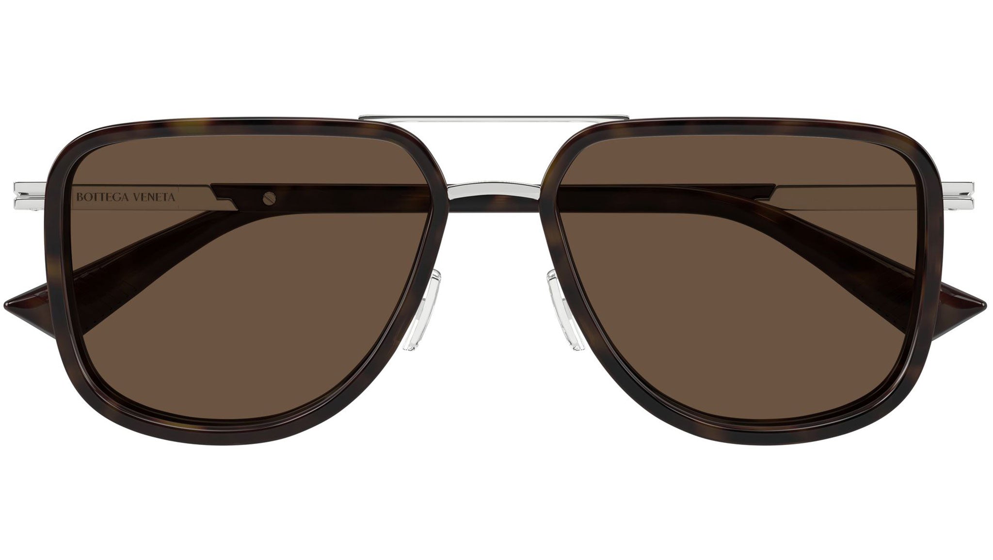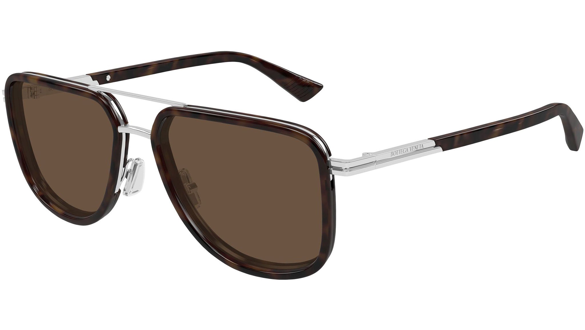 Occhiali da sole Bottega Veneta BV1463S 002 uomo con montatura aviatore in metallo argento lucido con cerchi avana scuro lucidi e lenti marrone tinta unita. Linea: Ribbon. Codice modello: BV1463S. Codice colore: 002. Made in Italy. Rivenditore autorizzato Bottega Veneta online. Gli occhiali vengono consegnati con custodia e accessori originali e sono coperti dalla garanzia ufficiale di 12 mesi del produttore.