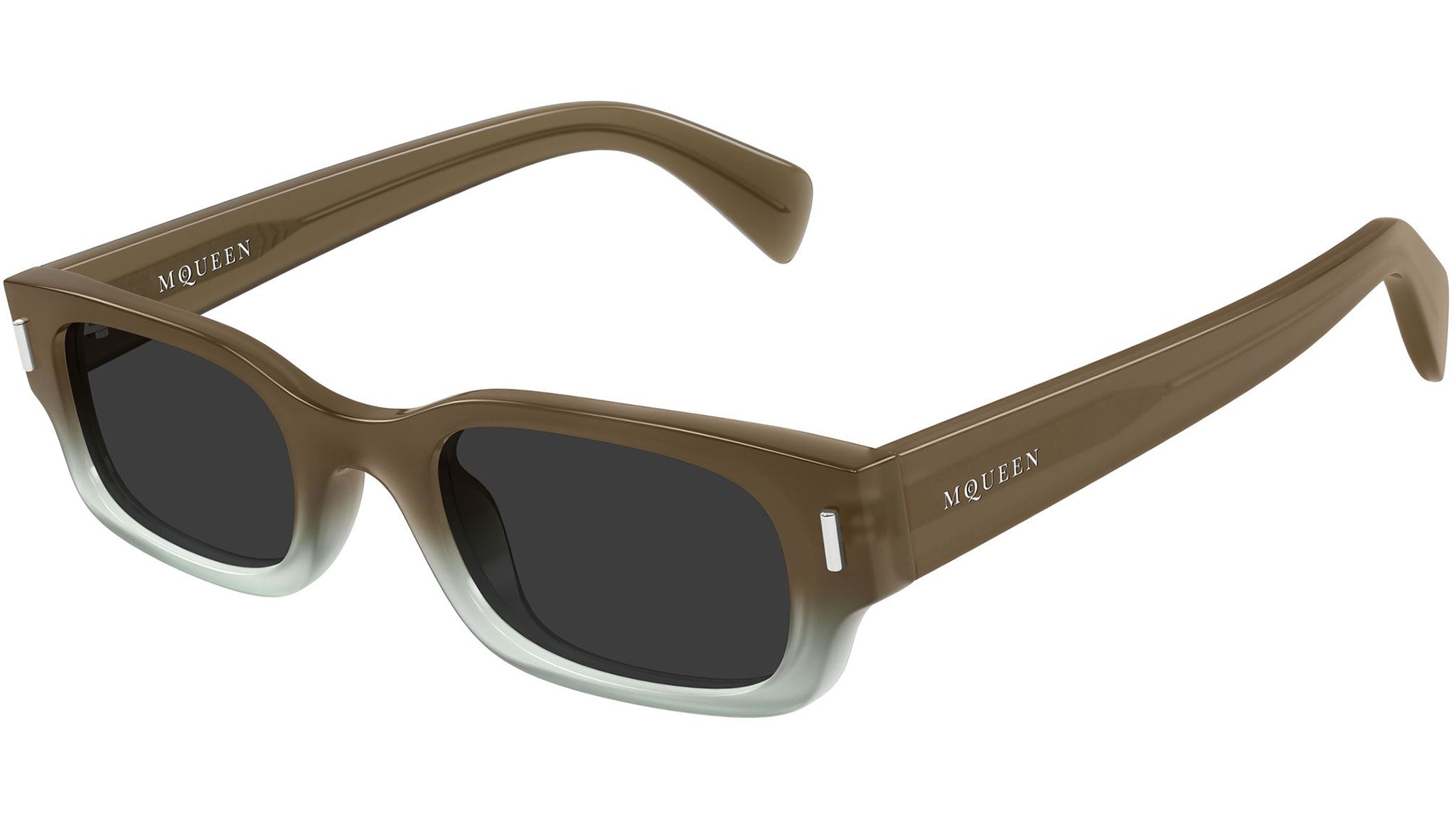 Occhiali da sole Alexander McQueen AM0549S 004 unisex con montatura pantos in acetato riciclato marrone opalino sfumato a blu grigiastro lucido e lenti grigio tinta unita. Linea: T-Bar. Codice modello: AM0549S. Codice colore: 004. Made in Italy. Rivenditore autorizzato Alexander McQueen online. Gli occhiali vengono consegnati con custodia e accessori originali e sono coperti dalla garanzia ufficiale di 12 mesi del produttore.