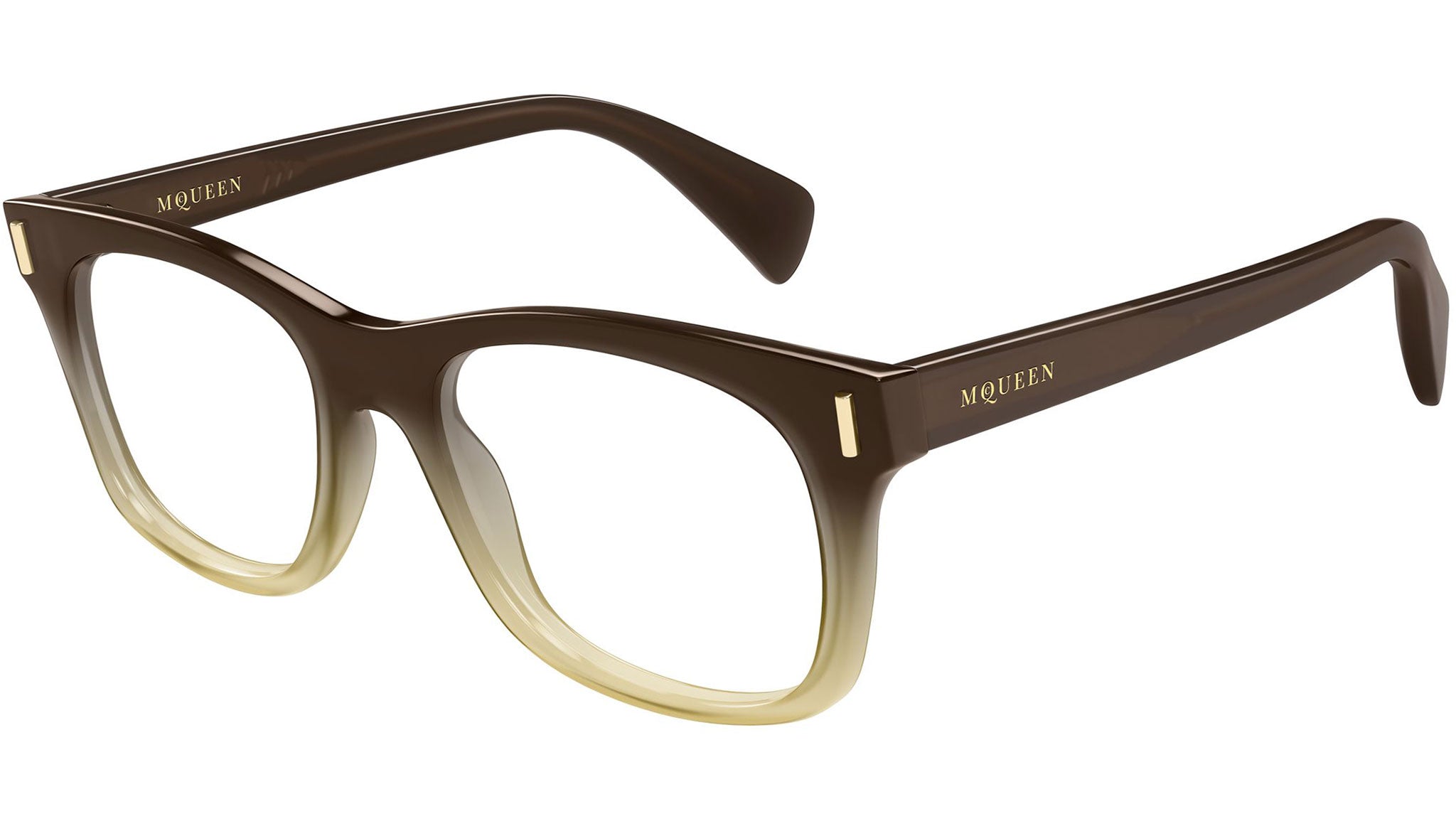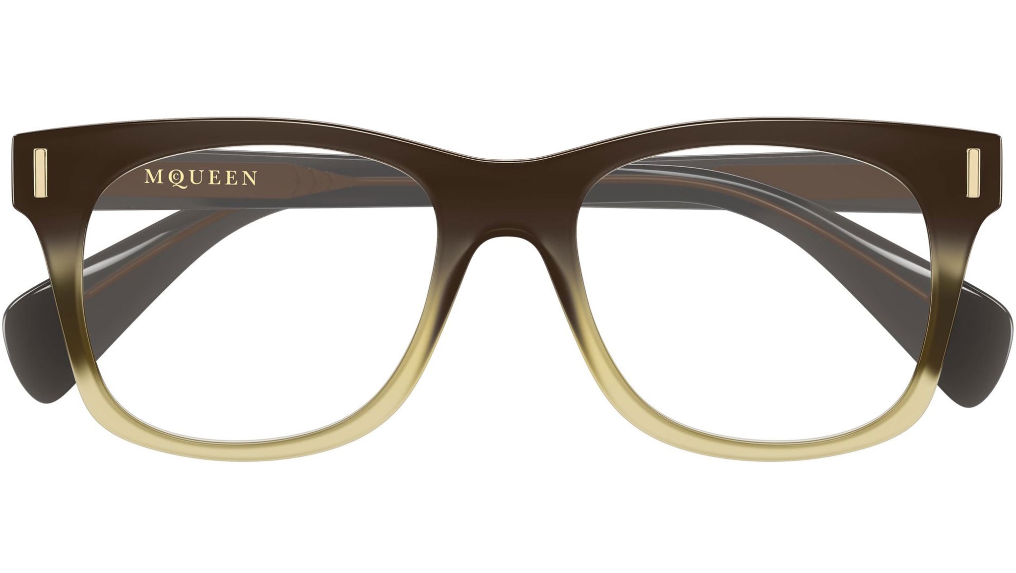 Occhiali da vista Alexander McQueen AM0551O 004 uomo con montatura rettangolare in acetato riciclato marrone opalino sfumato a miele opalino lucido e lenti demo. Linea: T-Bar. Codice modello: AM0551O. Codice colore: 004. Made in Italy. Rivenditore autorizzato Alexander McQueen online. Gli occhiali vengono consegnati con custodia e accessori originali e sono coperti dalla garanzia ufficiale di 12 mesi del produttore.