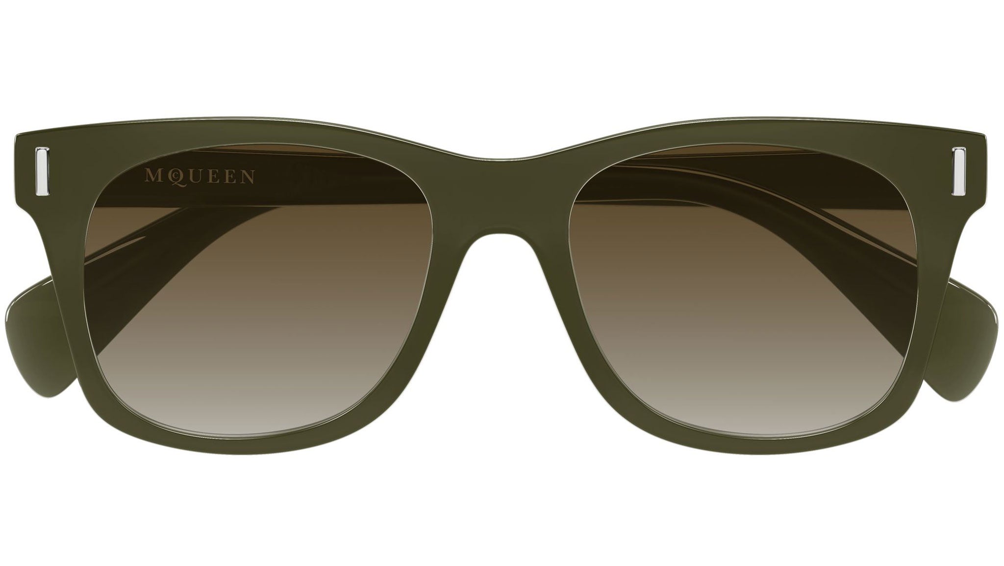 Occhiali da sole Alexander McQueen AM0551S 003 uomo con montatura rettangolare in acetato riciclato verde oliva opalino lucido e lenti marrone sfumato. Linea: T-Bar. Codice modello: AM0551S. Codice colore: 003. Made in Italy. Rivenditore autorizzato Alexander McQueen online. Gli occhiali vengono consegnati con custodia e accessori originali e sono coperti dalla garanzia ufficiale di 12 mesi del produttore.