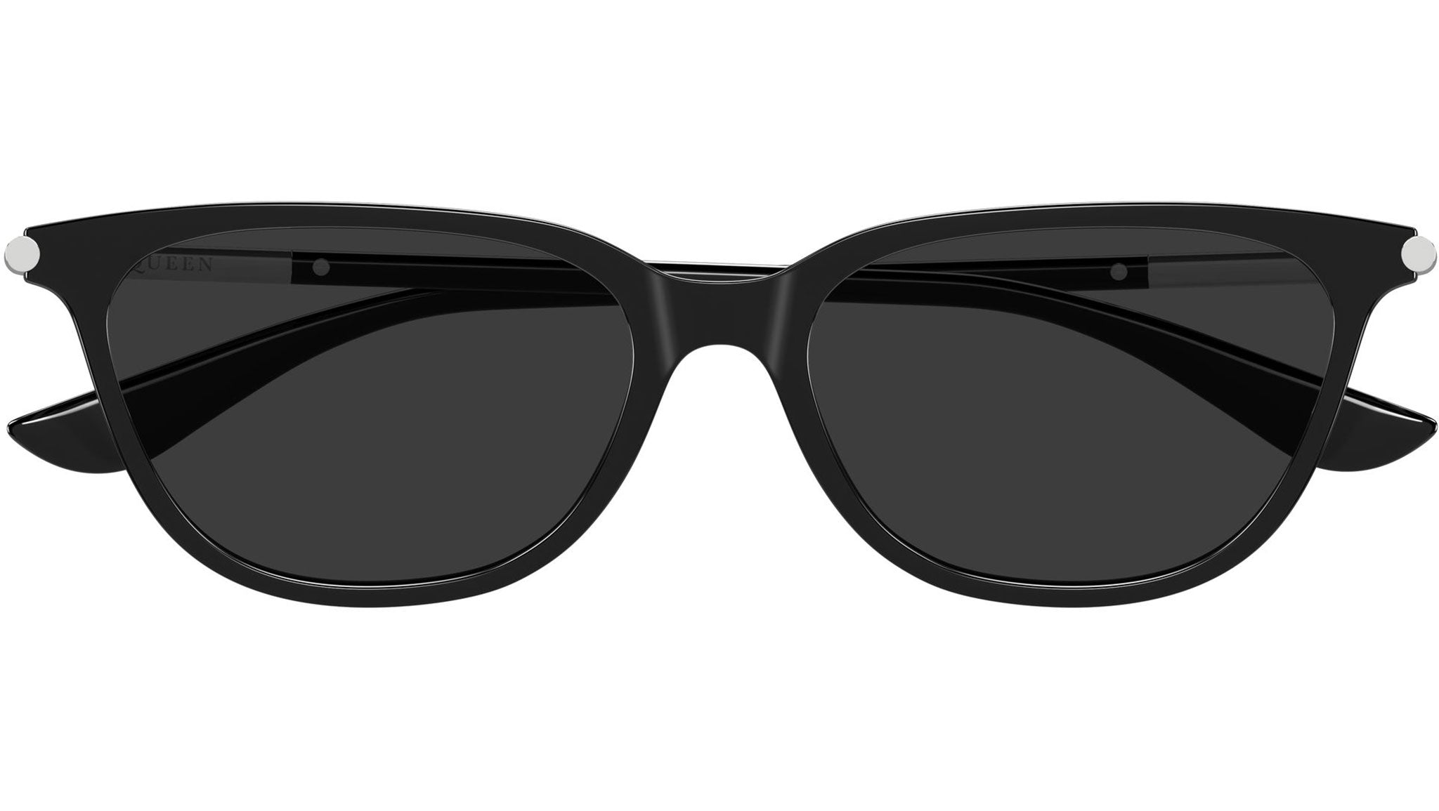 Occhiali da sole Alexander McQueen AM0553S 001 donna con montatura cat eye in acetato riciclato nero lucido tinta unita e lenti grigio tinta unita. Linea: T-Bar. Codice modello: AM0553S. Codice colore: 001. Made in Japan. Rivenditore autorizzato Alexander McQueen online. Gli occhiali vengono consegnati con custodia e accessori originali e sono coperti dalla garanzia ufficiale di 12 mesi del produttore.