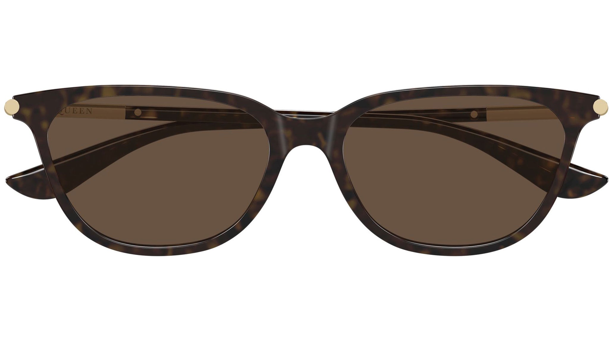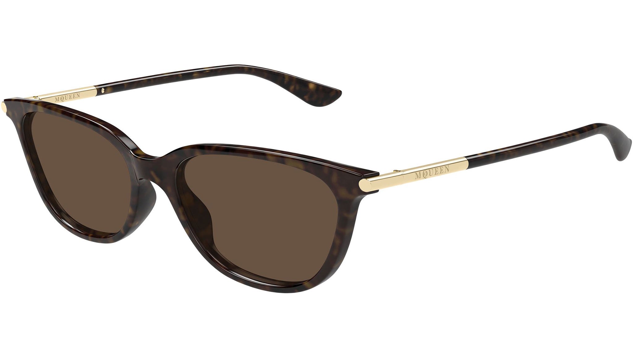 Occhiali da sole Alexander McQueen AM0553S 002 donna con montatura cat eye in acetato riciclato avana scuro lucido e lenti marrone tinta unita. Linea: T-Bar. Codice modello: AM0553S. Codice colore: 002. Made in Japan. Rivenditore autorizzato Alexander McQueen online. Gli occhiali vengono consegnati con custodia e accessori originali e sono coperti dalla garanzia ufficiale di 12 mesi del produttore.
