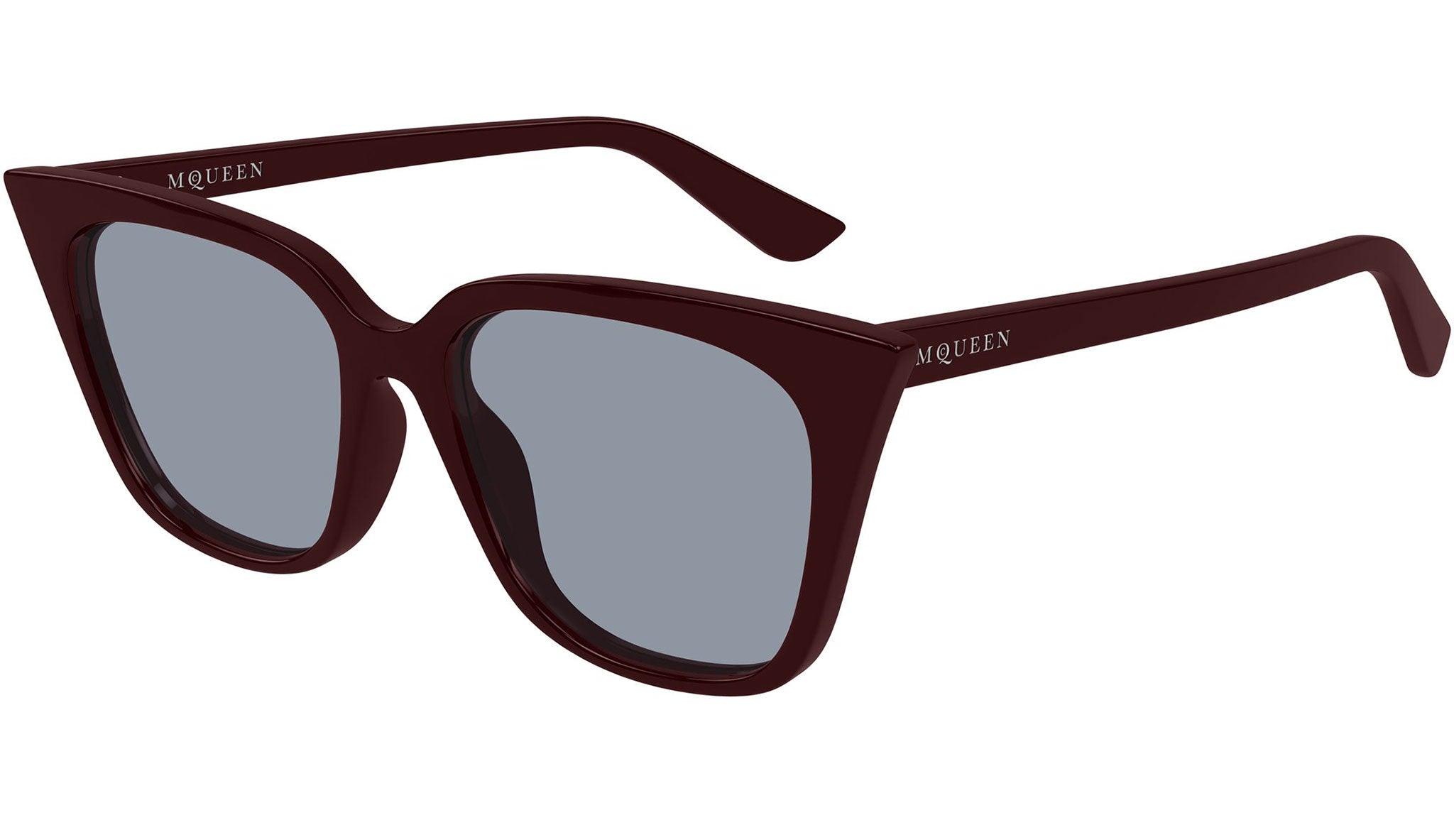 Occhiali da sole Alexander McQueen AM0556S 004 donna con montatura cat eye in acetato riciclato bordeaux intenso lucido e lenti azzurro tinta unita. Linea: Logo. Codice modello: AM0556S. Codice colore: 004. Made in Italy. Rivenditore autorizzato Alexander McQueen online. Gli occhiali vengono consegnati con custodia e accessori originali e sono coperti dalla garanzia ufficiale di 12 mesi del produttore.