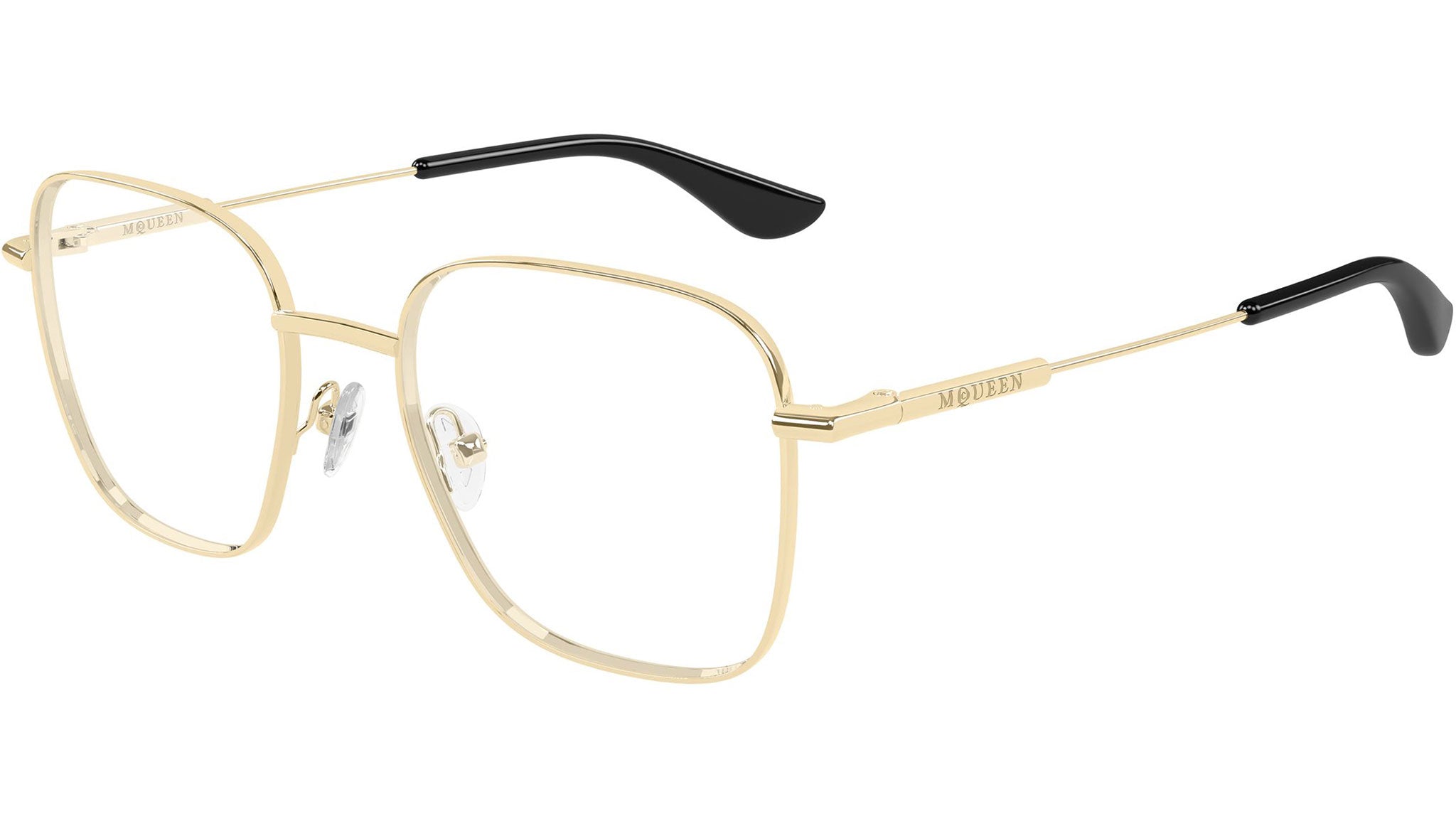 Occhiali da vista Alexander McQueen AM0565O 002 donna con montatura rettangolare in metallo oro chiaro lucido e lenti demo. Linea: T-Bar. Codice modello: AM0565O. Codice colore: 002. Made in Italy. Rivenditore autorizzato Alexander McQueen online. Gli occhiali vengono consegnati con custodia e accessori originali e sono coperti dalla garanzia ufficiale di 12 mesi del produttore.