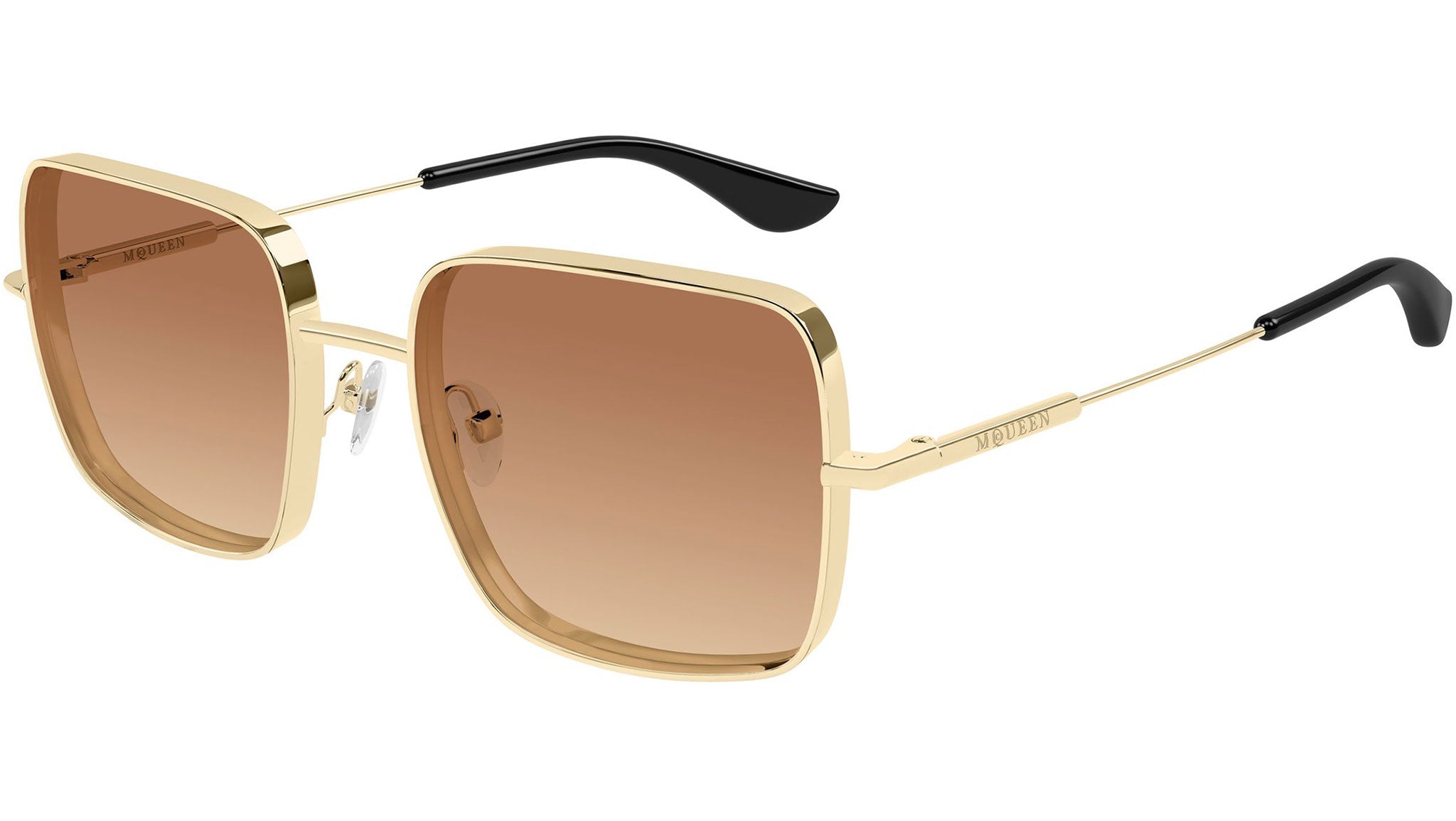 Occhiali da sole Alexander McQueen AM0564S 002 donna con montatura rettangolare in metallo oro chiaro lucido e lenti doppia sfumatura arancione. Linea: T-Bar. Codice modello: AM0564S. Codice colore: 002. Made in Italy. Rivenditore autorizzato Alexander McQueen online. Gli occhiali vengono consegnati con custodia e accessori originali e sono coperti dalla garanzia ufficiale di 12 mesi del produttore.