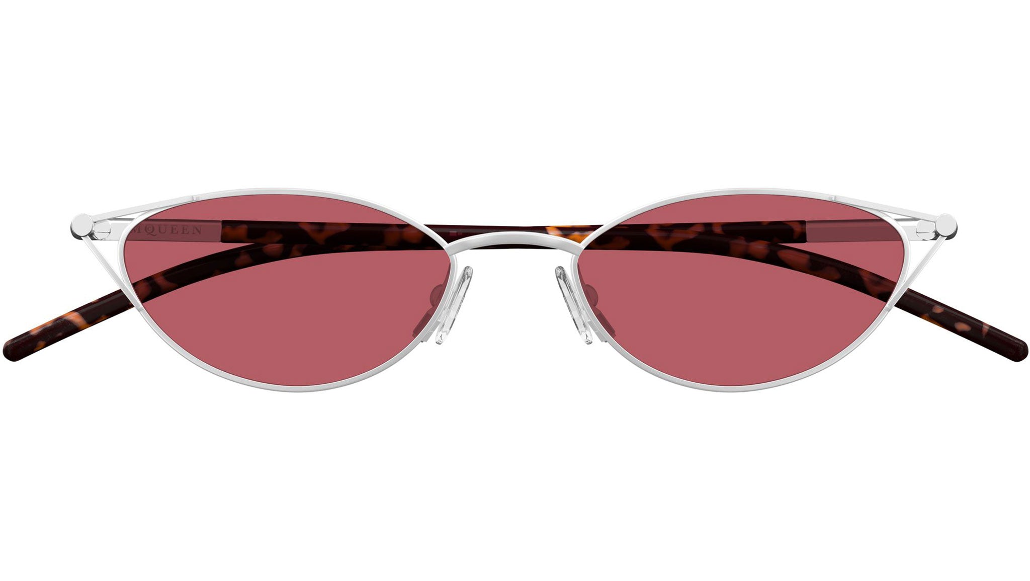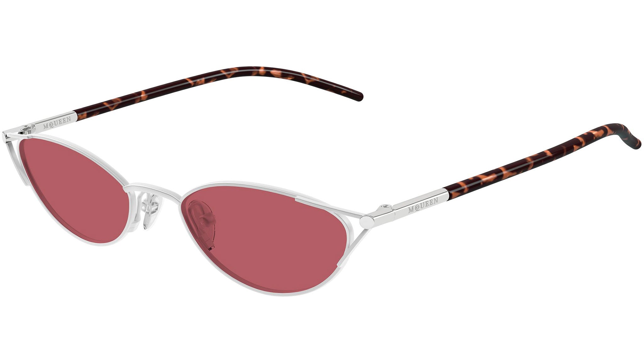 Occhiali da sole Alexander McQueen AM0563S 003 donna con montatura cat eye in metallo argento opaco e lenti ciliegia solido. Linea: T-Bar. Codice modello: AM0563S. Codice colore: 003. Made in Japan. Rivenditore autorizzato Alexander McQueen online. Gli occhiali vengono consegnati con custodia e accessori originali e sono coperti dalla garanzia ufficiale di 12 mesi del produttore.