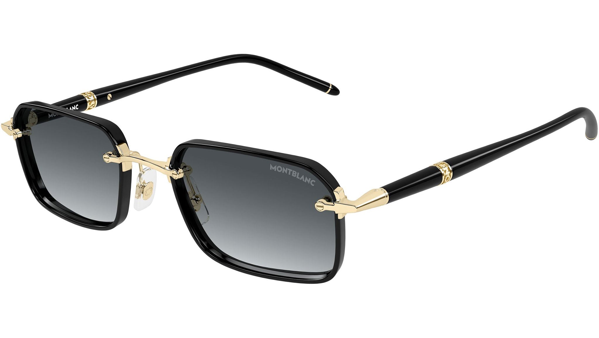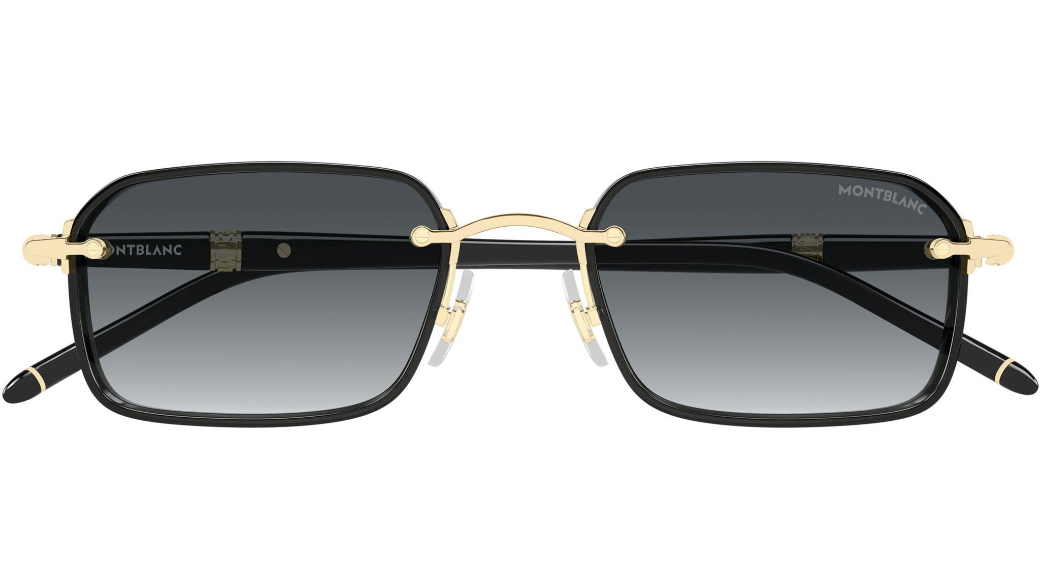 Occhiali da sole Montblanc MB0483S 001 uomo con montatura rettangolare in metallo oro chiaro lucido / cerchi nero lucido e lenti grigio sfumato. Linea: Meisterstück. Codice modello: MB0483S. Codice colore: 001. Made in Japan. Rivenditore autorizzato Montblanc online. Gli occhiali vengono consegnati con custodia e accessori originali e sono coperti dalla garanzia ufficiale di 12 mesi del produttore.