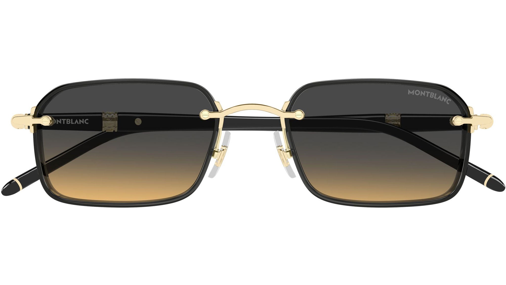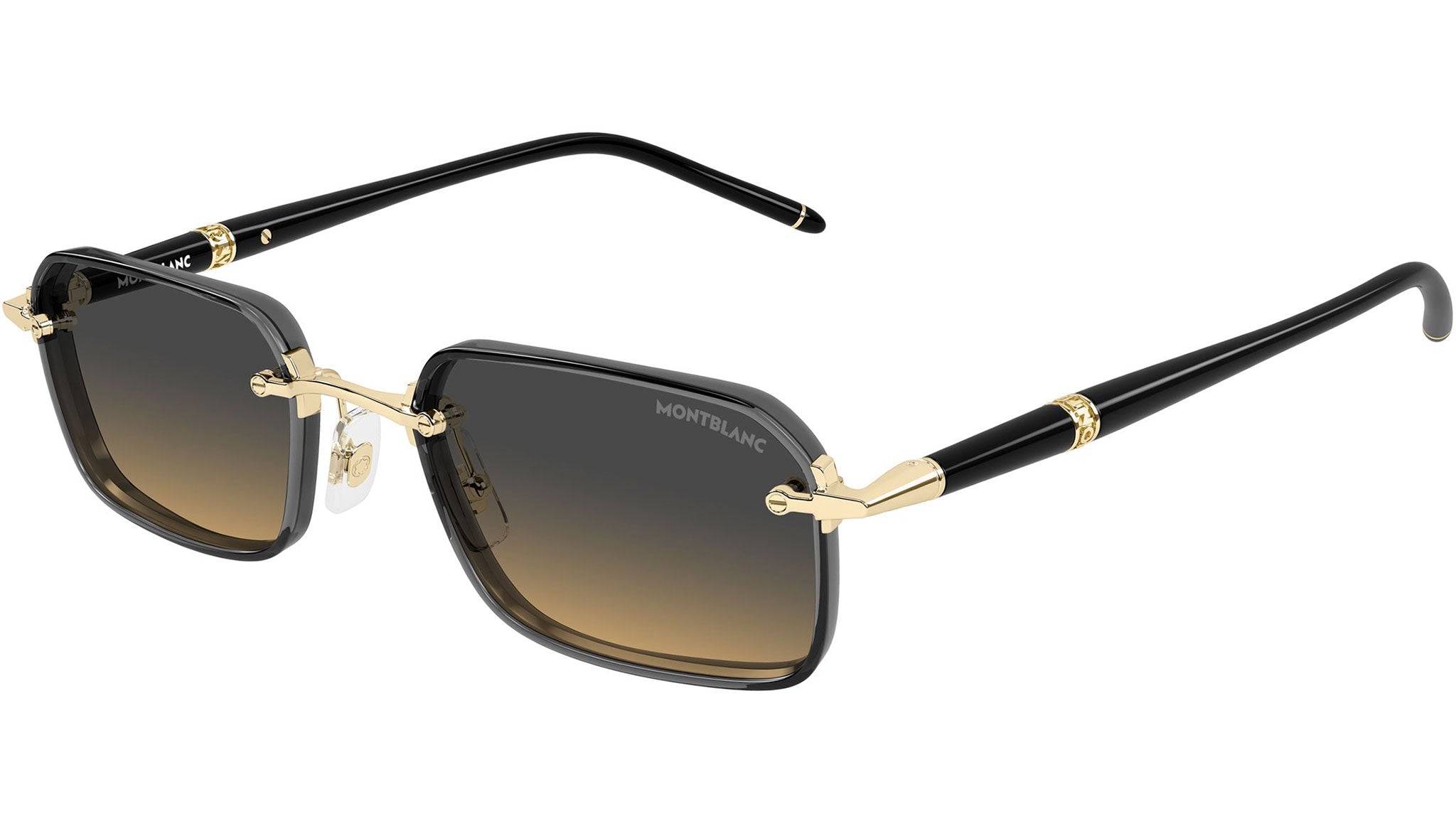 Occhiali da sole Montblanc MB0483S 002 uomo con montatura rettangolare in metallo oro chiaro lucido / grigio trasparente lucido eyerim e lenti doppia sfumatura grigio e arancione. Linea: Meisterstück. Codice modello: MB0483S. Codice colore: 002. Made in Japan. Rivenditore autorizzato Montblanc online. Gli occhiali vengono consegnati con custodia e accessori originali e sono coperti dalla garanzia ufficiale di 12 mesi del produttore.