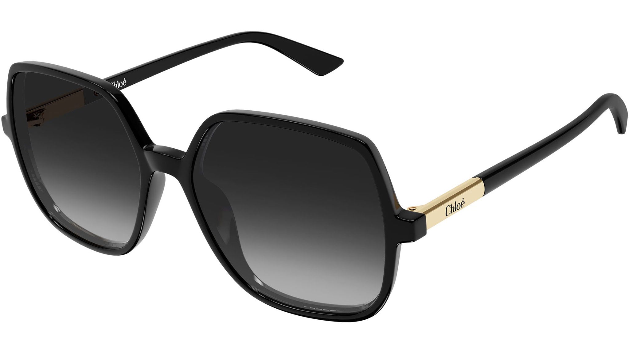 Occhiali da sole Chloé CH0362S 001 donna con montatura geometrica in acetato riciclato nero lucido e lenti grigio sfumato. Linea: Chloé. Codice modello: CH0362S. Codice colore: 001. Made in Italy. Rivenditore autorizzato Chloé Eyewear online. Gli occhiali vengono consegnati con custodia e accessori originali e sono coperti dalla garanzia ufficiale di 12 mesi del produttore.
