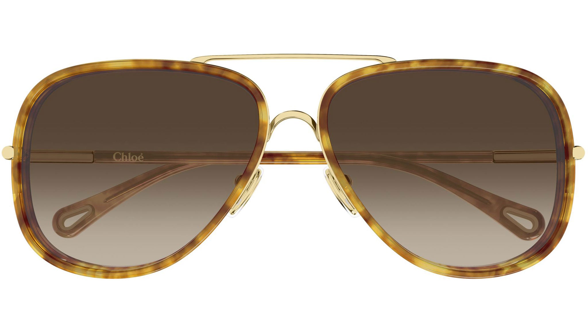 Occhiali da sole Chloé CH0382S 002 donna con montatura aviatore in metallo oro endura lucido e lenti marrone sfumato. Linea: Chloé. Codice modello: CH0382S. Codice colore: 002. Made in Italy. Rivenditore autorizzato Chloé Eyewear online. Gli occhiali vengono consegnati con custodia e accessori originali e sono coperti dalla garanzia ufficiale di 12 mesi del produttore.