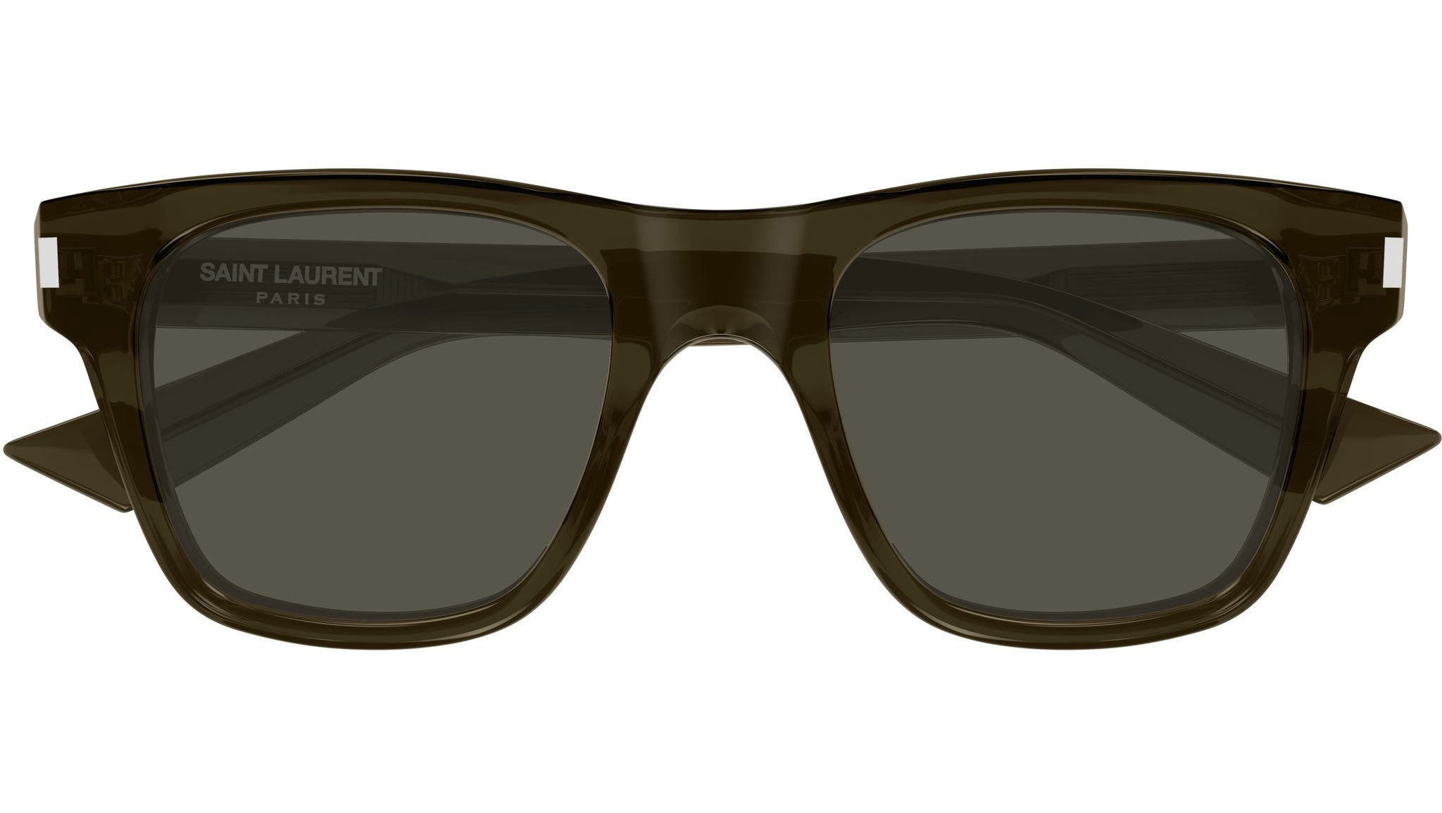 Occhiali da sole Saint Laurent SL 875 004 uomo con montatura rettangolare in acetato riciclato kaki trasparente lucido e lenti grigio tinta unita. Linea: Corner Angle. Codice modello: SL 875. Codice colore: 004. Made in Italy. Rivenditore autorizzato Saint Laurent online. Gli occhiali vengono consegnati con custodia e accessori originali e sono coperti dalla garanzia ufficiale di 12 mesi del produttore.