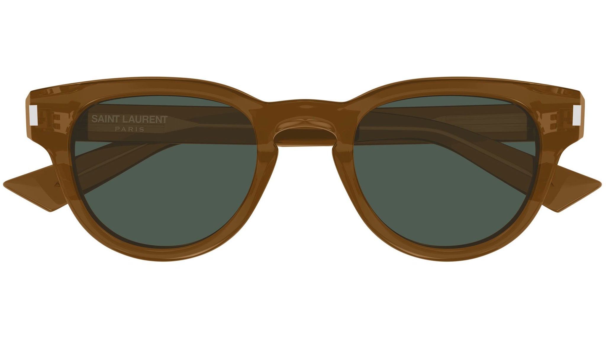 Occhiali da sole Saint Laurent SL 876 005 uomo con montatura ovale in acetato riciclato marrone cognac trasparente e lenti verde tinta unita. Linea: Corner Angle. Codice modello: SL 876. Codice colore: 005. Made in Italy. Rivenditore autorizzato Saint Laurent online. Gli occhiali vengono consegnati con custodia e accessori originali e sono coperti dalla garanzia ufficiale di 12 mesi del produttore.
