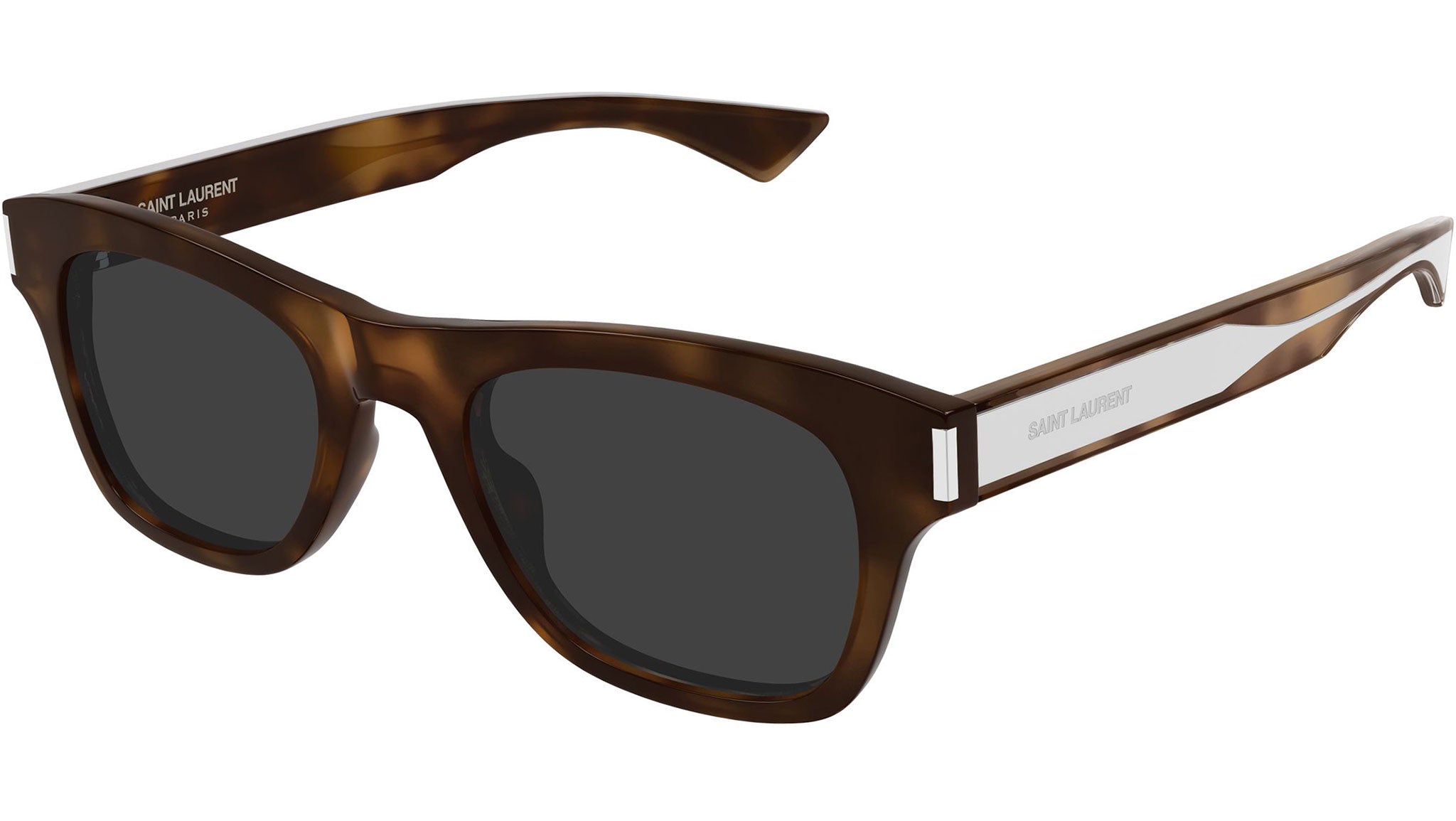 Occhiali da sole Saint Laurent SL 877 003 uomo con montatura rettangolare in acetato riciclato avana medio lucido e lenti grigio tinta unita. Linea: Corner Angle. Codice modello: SL 877. Codice colore: 003. Made in Japan. Rivenditore autorizzato Saint Laurent online. Gli occhiali vengono consegnati con custodia e accessori originali e sono coperti dalla garanzia ufficiale di 12 mesi del produttore.