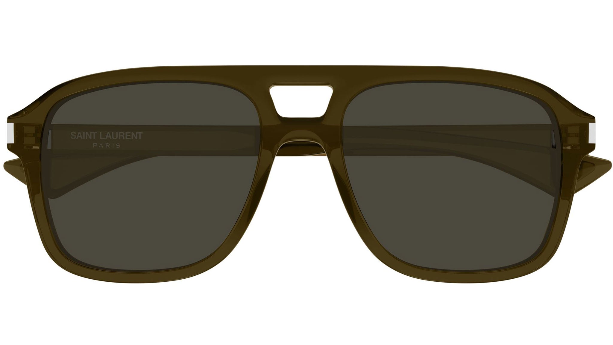 Occhiali da sole Saint Laurent SL 881 004 unisex con montatura aviatore in acetato riciclato kaki trasparente lucido e lenti grigio tinta unita. Linea: Corner Angle. Codice modello: SL 881. Codice colore: 004. Made in Japan. Rivenditore autorizzato Saint Laurent online. Gli occhiali vengono consegnati con custodia e accessori originali e sono coperti dalla garanzia ufficiale di 12 mesi del produttore.