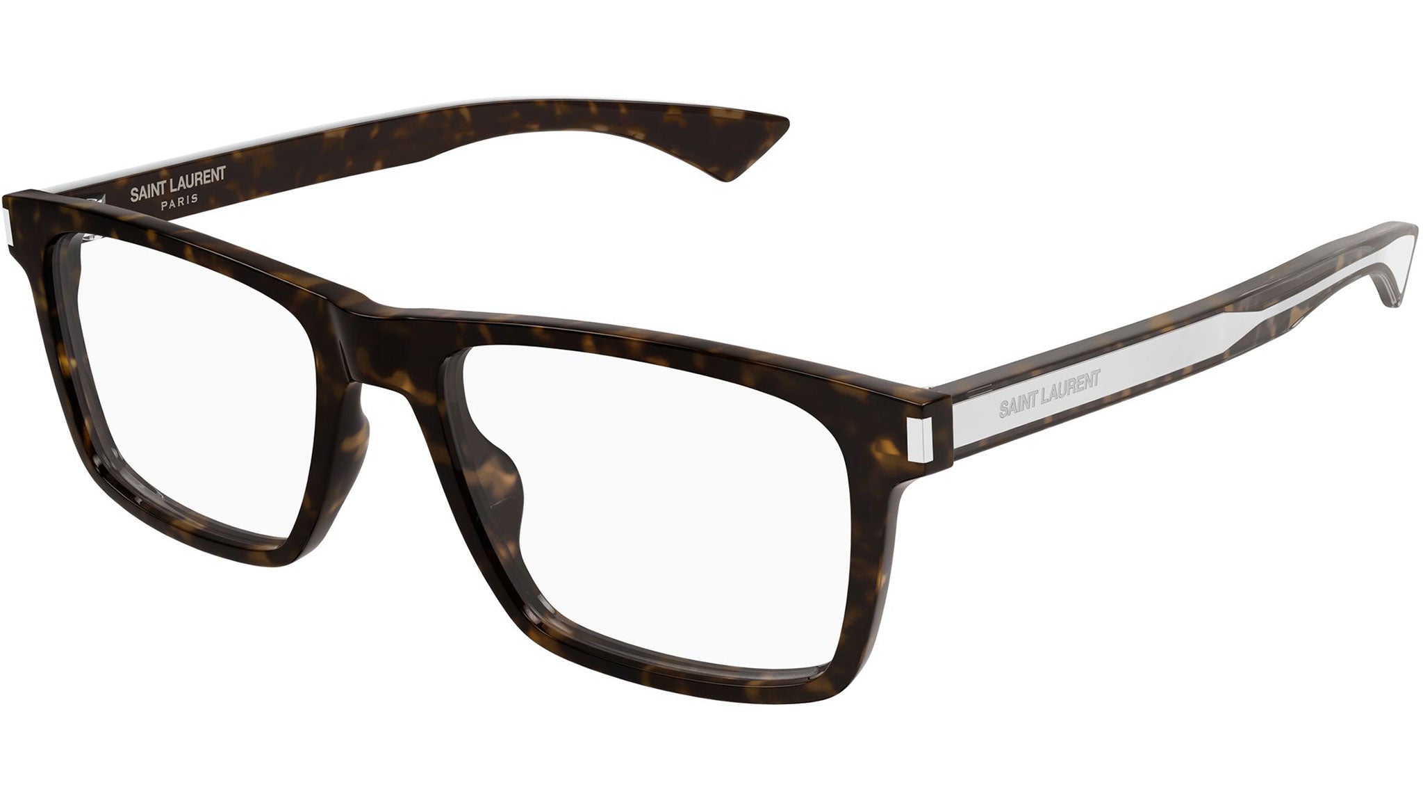 Occhiali da vista Saint Laurent SL 882 007 uomo con montatura rettangolare in acetato riciclato avana scuro lucido e lenti demo. Linea: Corner Angle. Codice modello: SL 882. Codice colore: 007. Made in Japan. Rivenditore autorizzato Saint Laurent online. Gli occhiali vengono consegnati con custodia e accessori originali e sono coperti dalla garanzia ufficiale di 12 mesi del produttore.