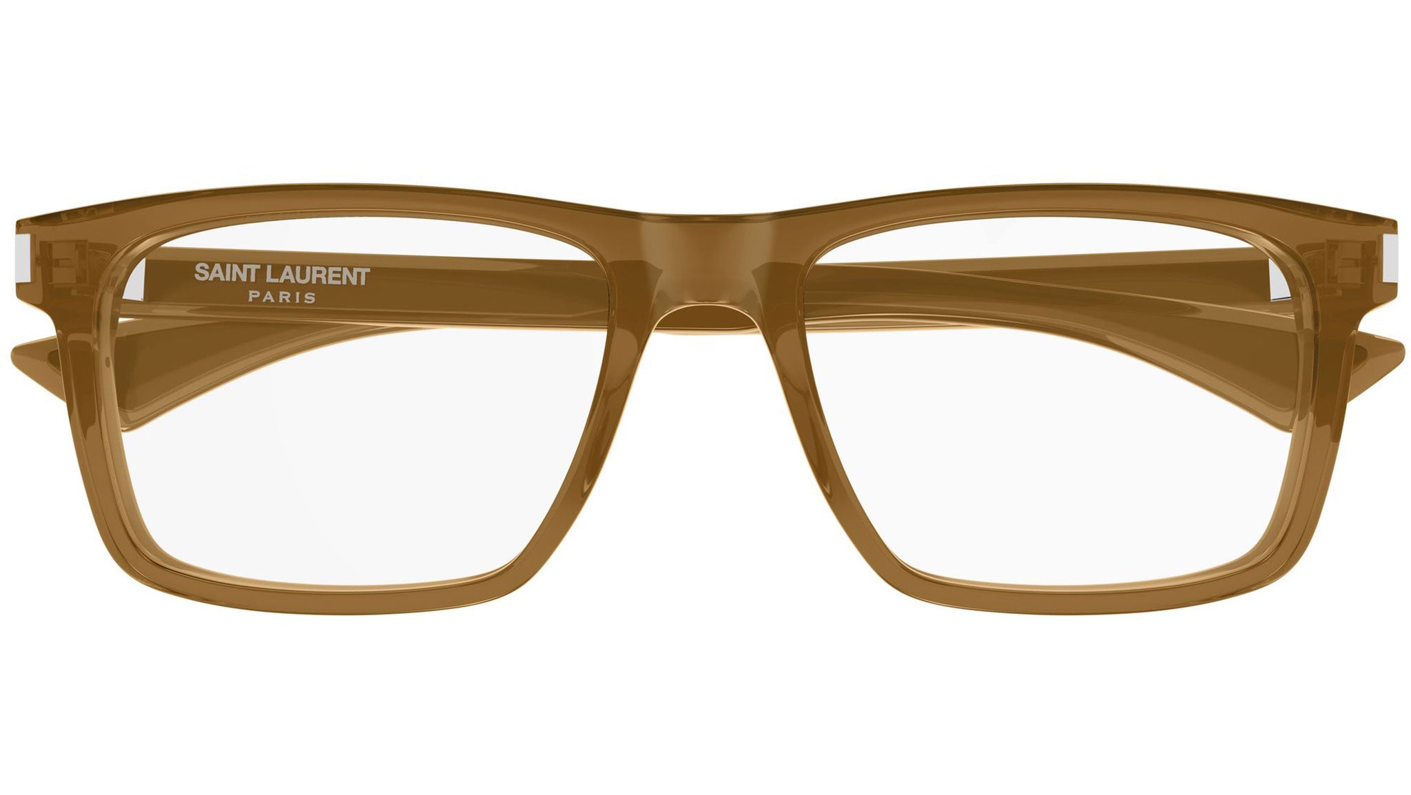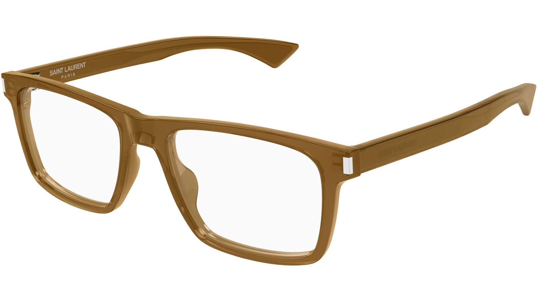 Occhiali da vista Saint Laurent SL 882 010 uomo con montatura rettangolare in acetato riciclato marrone cognac trasparente e lenti demo. Linea: Corner Angle. Codice modello: SL 882. Codice colore: 010. Made in Japan. Rivenditore autorizzato Saint Laurent online. Gli occhiali vengono consegnati con custodia e accessori originali e sono coperti dalla garanzia ufficiale di 12 mesi del produttore.