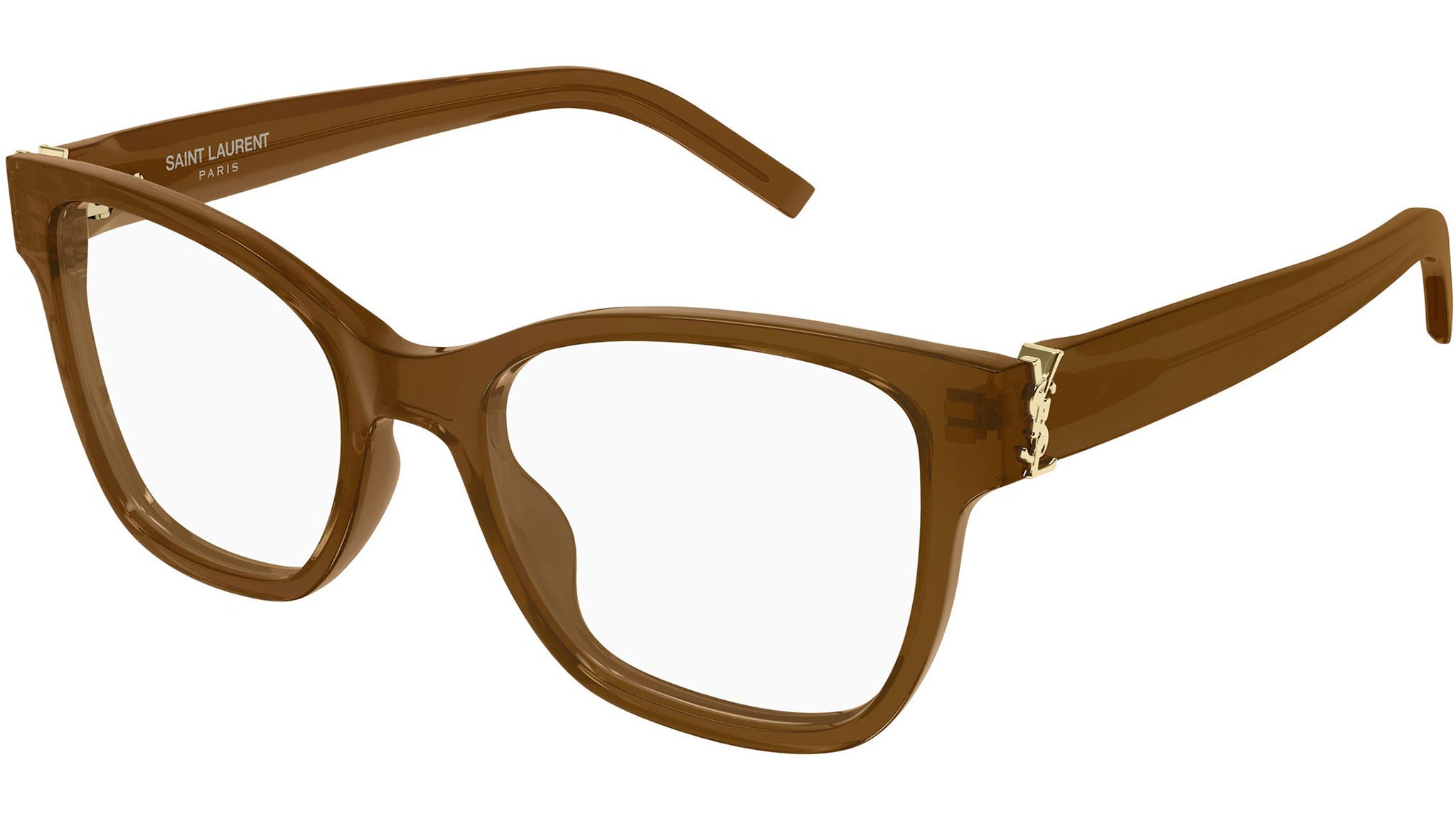 Occhiali da vista Saint Laurent SL M158 donna con montatura cat eye in acetato riciclato marrone cognac trasparente e lenti demo. Linea: Monogram. Codice modello: SL M158. Codice colore 54 mm: 011. 52 mm: 006. Made in Italy. Rivenditore autorizzato Saint Laurent online. Gli occhiali vengono consegnati con custodia e accessori originali e sono coperti dalla garanzia ufficiale di 12 mesi del produttore.
