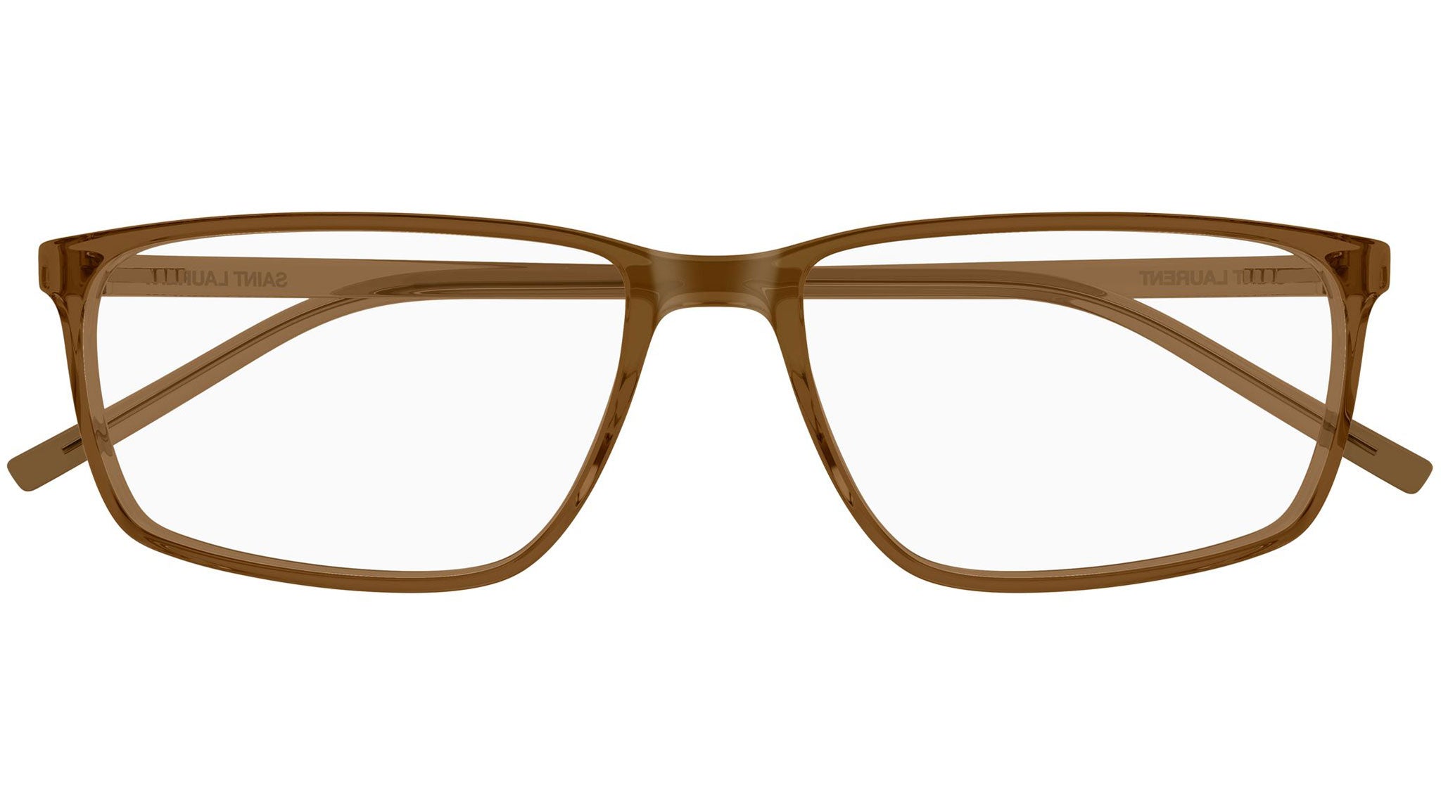 Occhiali da vista Saint Laurent SL 886 006 uomo con montatura rettangolare in inietatto cognac trasparente lucido e lenti demo. Linea: SL Logo. Codice modello: SL 886. Codice colore: 006. Made in Italy. Rivenditore autorizzato Saint Laurent online. Gli occhiali vengono consegnati con custodia e accessori originali e sono coperti dalla garanzia ufficiale di 12 mesi del produttore.