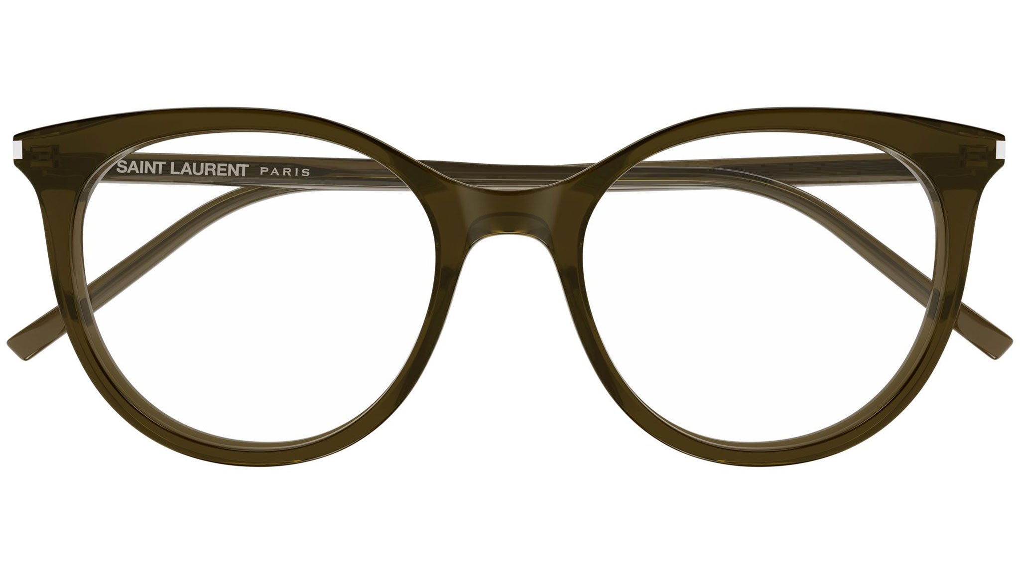 Occhiali da vista Saint Laurent SL 891 007 donna con montatura cat eye in acetato riciclato kaki trasparente lucido e lenti demo. Linea: Corner Angle. Codice modello: SL 891. Codice colore: 007. Made in Italy. Rivenditore autorizzato Saint Laurent online. Gli occhiali vengono consegnati con custodia e accessori originali e sono coperti dalla garanzia ufficiale di 12 mesi del produttore.