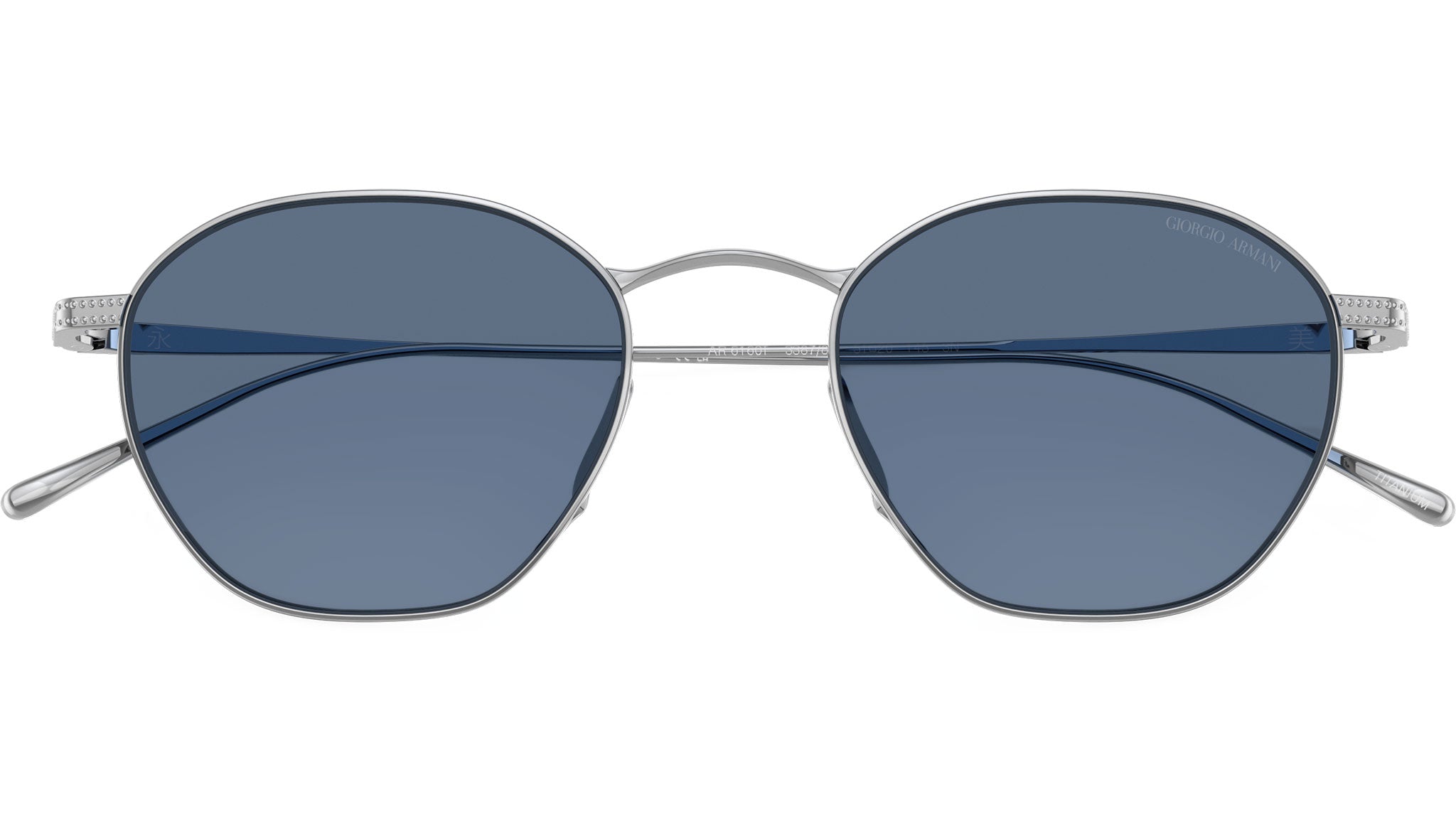 Occhiali da sole Giorgio Armani AR 6160T 338780 con montatura squadrata in titanio argento e lenti in poliammide color blu scuro. Naselli regolabili. Linea: Armani Code. Codice modello: 0AR6160T. Codice colore: 338780. Rivenditore autorizzato Giorgio Armani online. Gli occhiali vengono consegnati con custodia e accessori originali e sono coperti dalla garanzia ufficiale di 12 mesi del produttore.