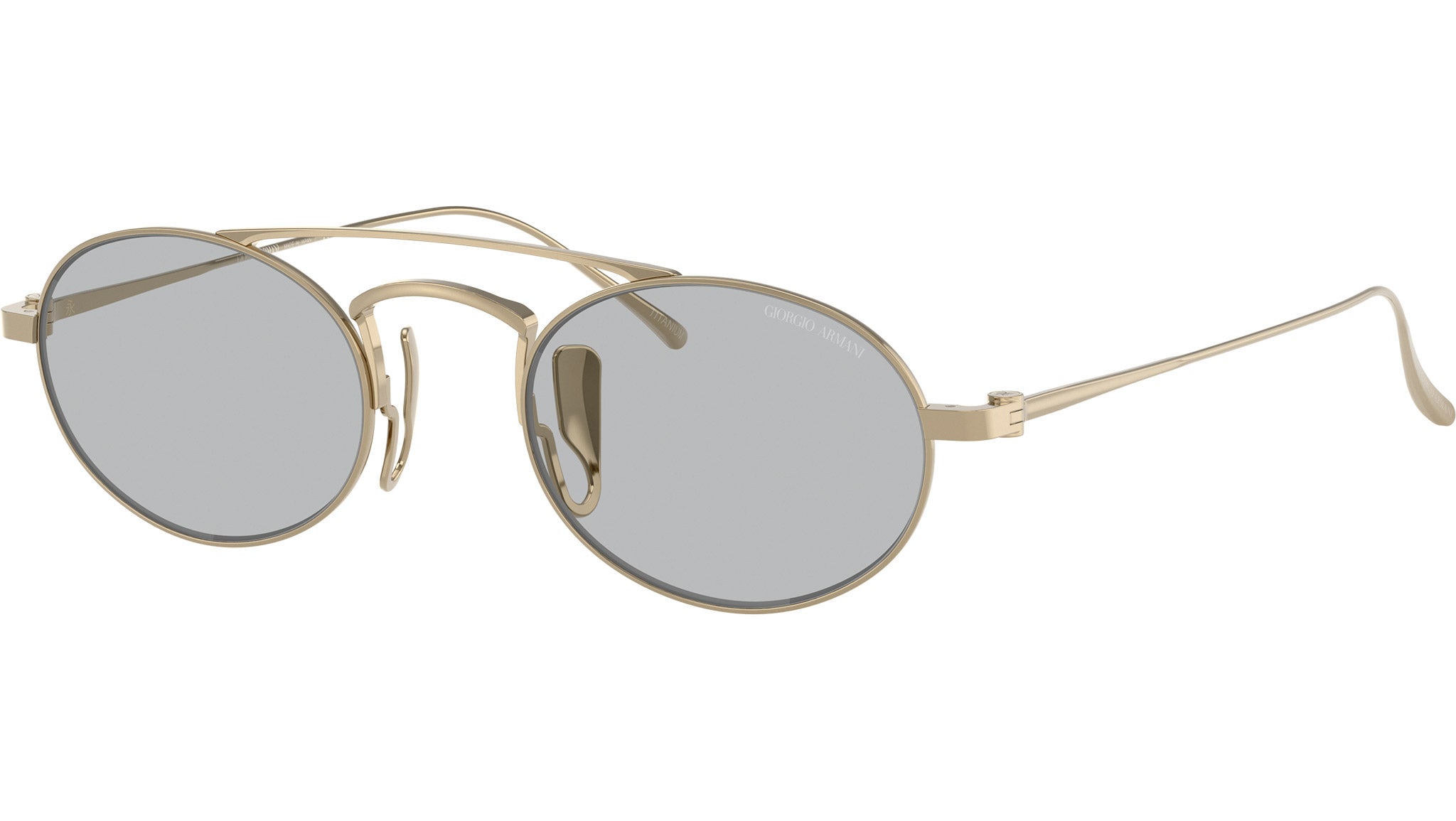 Occhiali da sole Giorgio Armani AR 6161T 338487 con montatura ovale in titanio oro chiaro e lenti in poliammide color grigio chiaro. Naselli regolabili. Linea: Armani Code. Codice modello: 0AR6161T. Codice colore: 338487. Rivenditore autorizzato Giorgio Armani online. Gli occhiali vengono consegnati con custodia e accessori originali e sono coperti dalla garanzia ufficiale di 12 mesi del produttore.