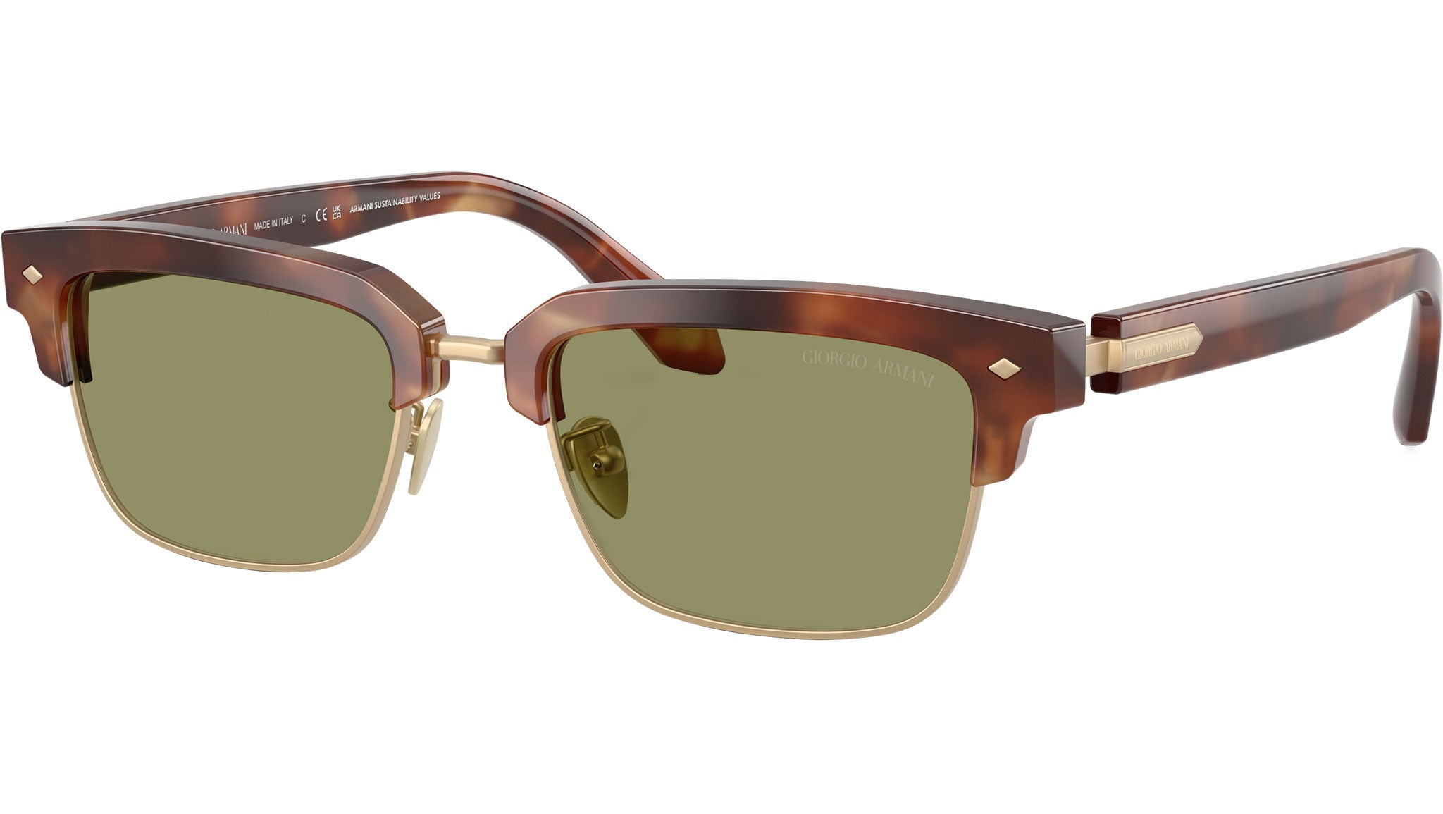 Occhiali da sole Giorgio Armani AR 8243 630214 con montatura rettangolare in acetato marrone avana e lenti in cristallo color verde. Naselli regolabili. Linea: Visionary Luxury. Codice modello: 0AR8243. Codice colore: 630214. Rivenditore autorizzato Giorgio Armani online. Gli occhiali vengono consegnati con custodia e accessori originali e sono coperti dalla garanzia ufficiale di 12 mesi del produttore.
