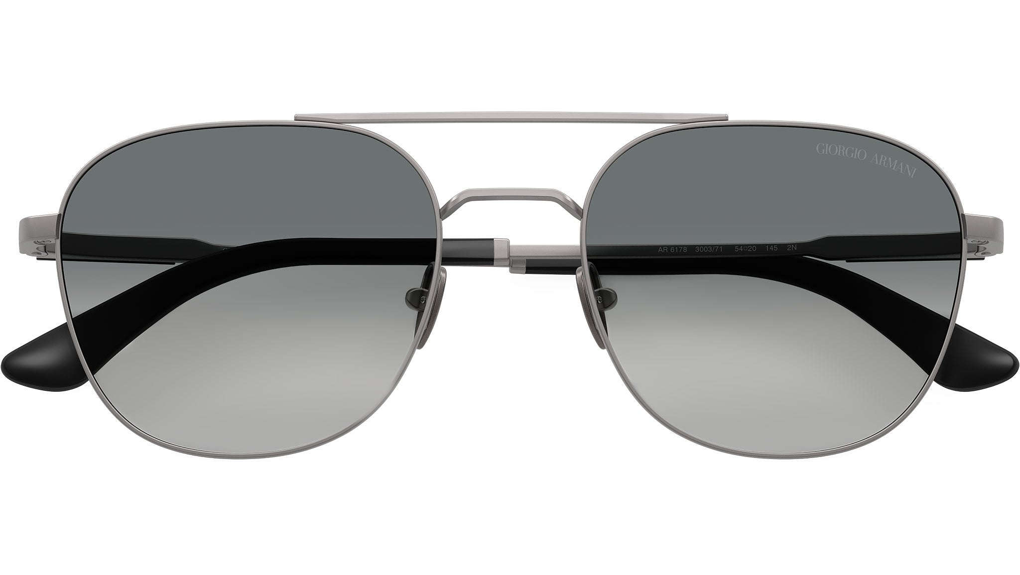 Occhiali da sole Giorgio Armani AR 6178 300371 con montatura rettangolare in metallo canna di fucile opaco e lenti in cristallo color grigio sfumato. Naselli regolabili. Linea: Armani Code. Codice modello: 0AR6178. Codice colore: 300371. Rivenditore autorizzato Giorgio Armani online. Gli occhiali vengono consegnati con custodia e accessori originali e sono coperti dalla garanzia ufficiale di 12 mesi del produttore.