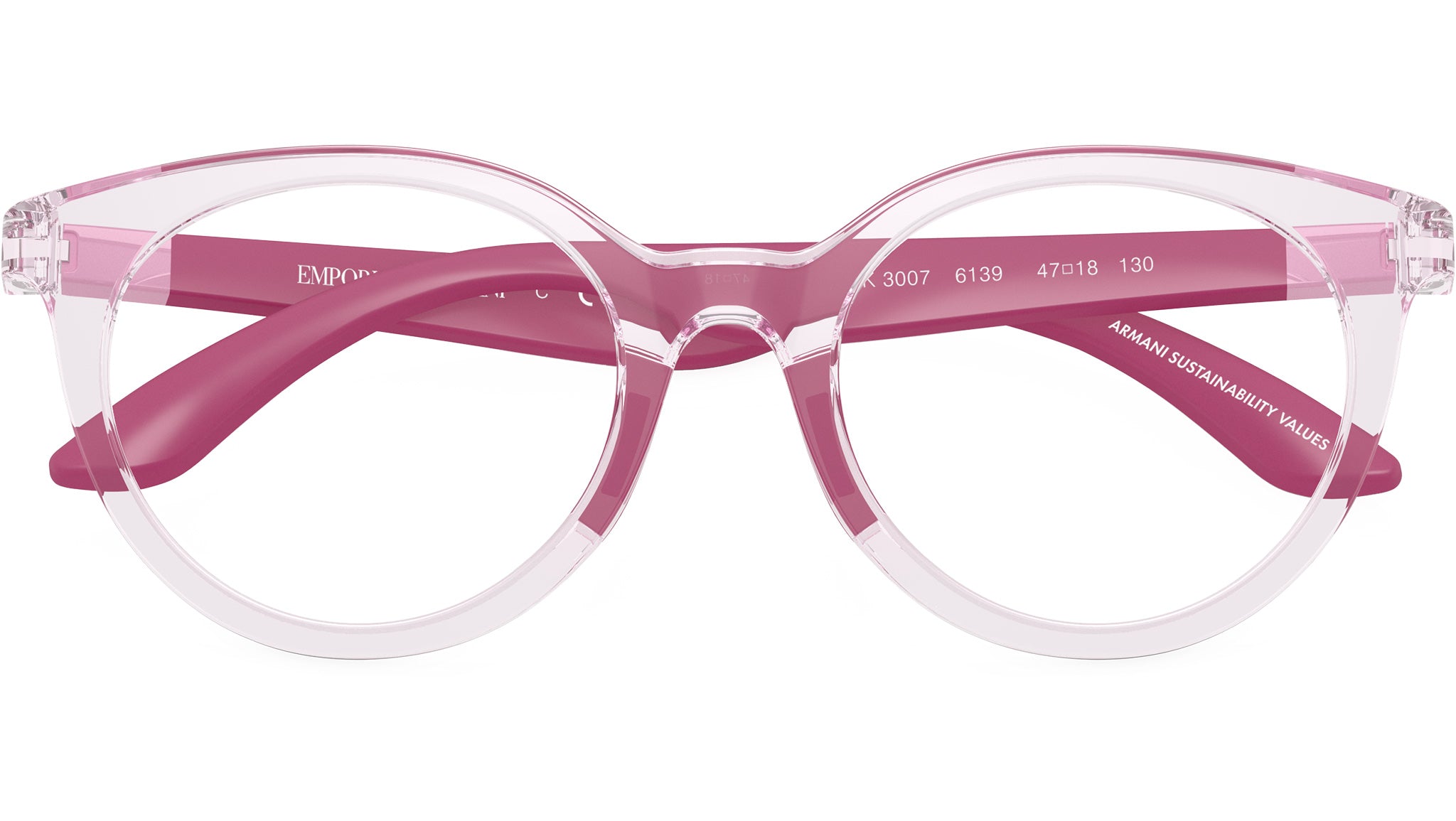 Occhiali da vista Emporio Armani Kids EK3007 6139 con montatura pantos in iniettato rosa trasparente lucido e lenti demo. Vestibilità a ponte alto. Linea: Essential Leisure. Codice modello: 0EK3007. Codice colore: 6139. Rivenditore autorizzato Emporio Armani Kids online. Gli occhiali vengono consegnati con custodia e accessori originali e sono coperti dalla garanzia ufficiale di 12 mesi del produttore.
