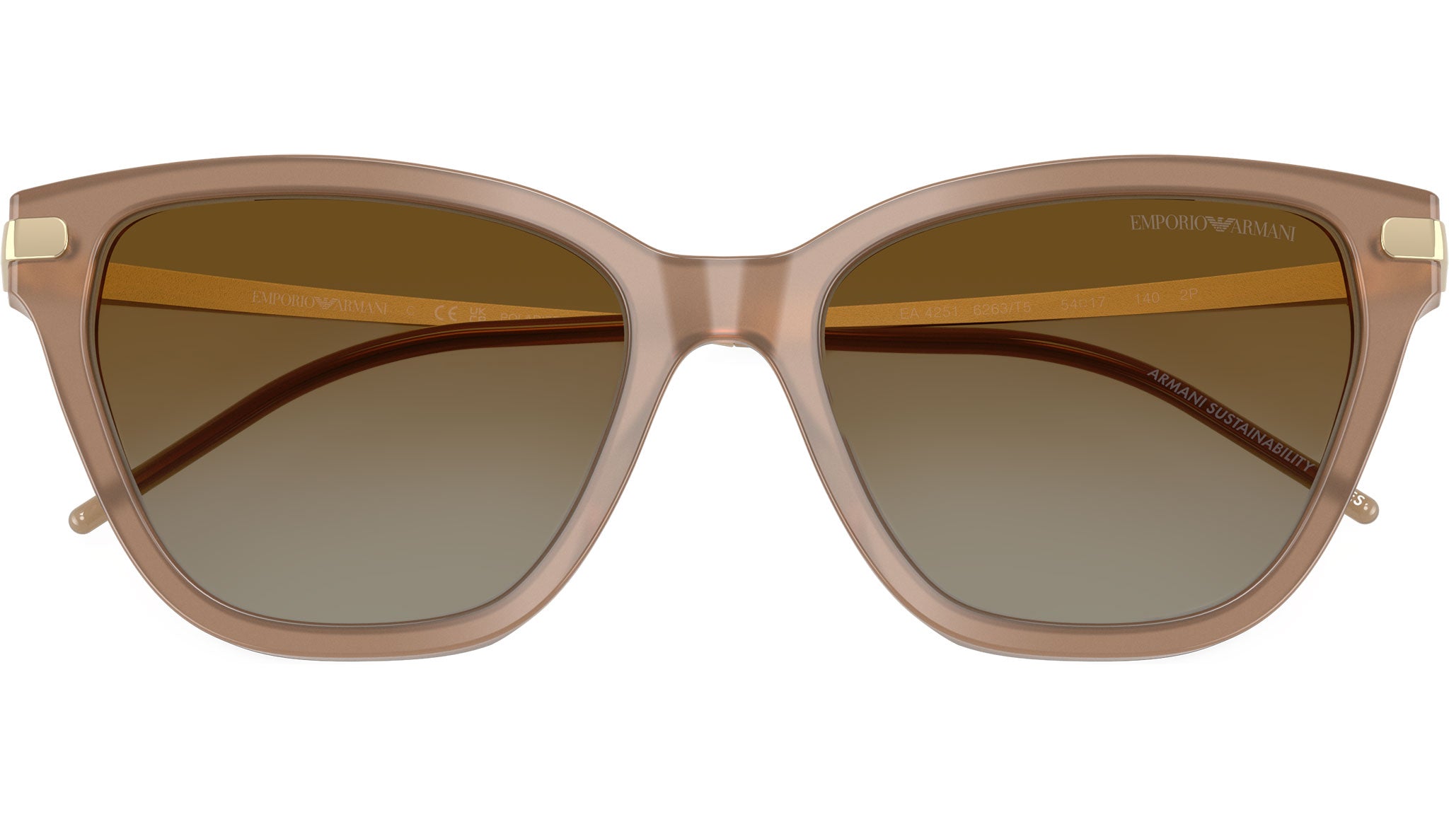 Occhiali da sole Emporio Armani EA4251 6263T5 con montatura cat eye in acetato opale tundra lucido e lenti in CR-39 color polarizzata marrone sfumato. Vestibilità a ponte alto. Linea: Modern. Codice modello: 0EA4251. Codice colore: 6263T5. Rivenditore autorizzato Emporio Armani online. Gli occhiali vengono consegnati con custodia e accessori originali e sono coperti dalla garanzia ufficiale di 12 mesi del produttore.