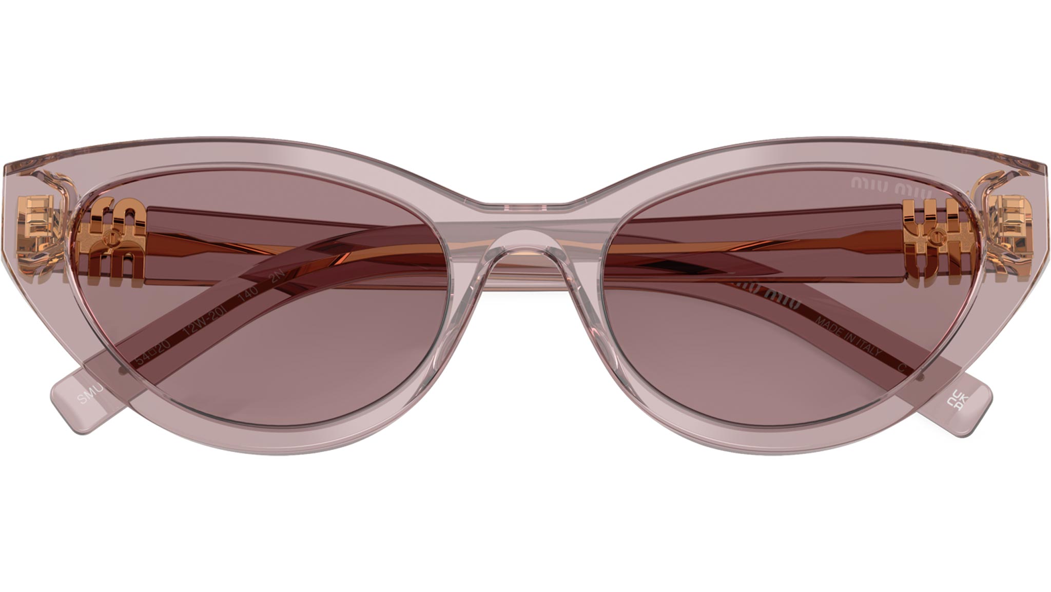 Occhiali da sole Miu Miu MU A04S 12W20I donna con montatura butterfly in acetato malva trasparente e lenti in bio poliammide color marrone chiaro sfumato. Vestibilità a ponte alto. Linea: Signature. Codice modello: 0MU A04S. Codice colore: 12W20I. Made in Italy. Rivenditore autorizzato Miu Miu online. Gli occhiali vengono consegnati con custodia e accessori originali e sono coperti dalla garanzia ufficiale di 12 mesi del produttore.