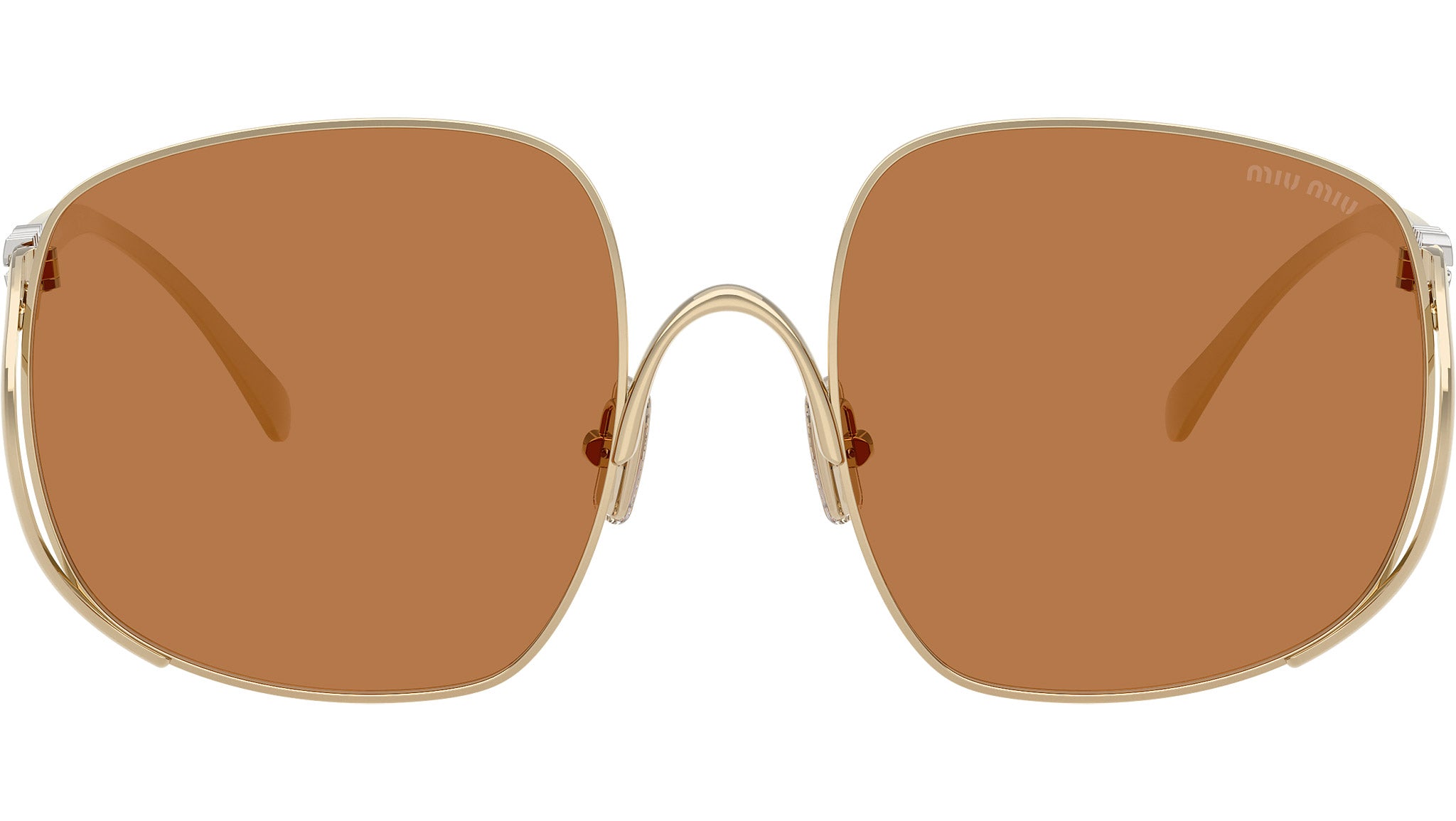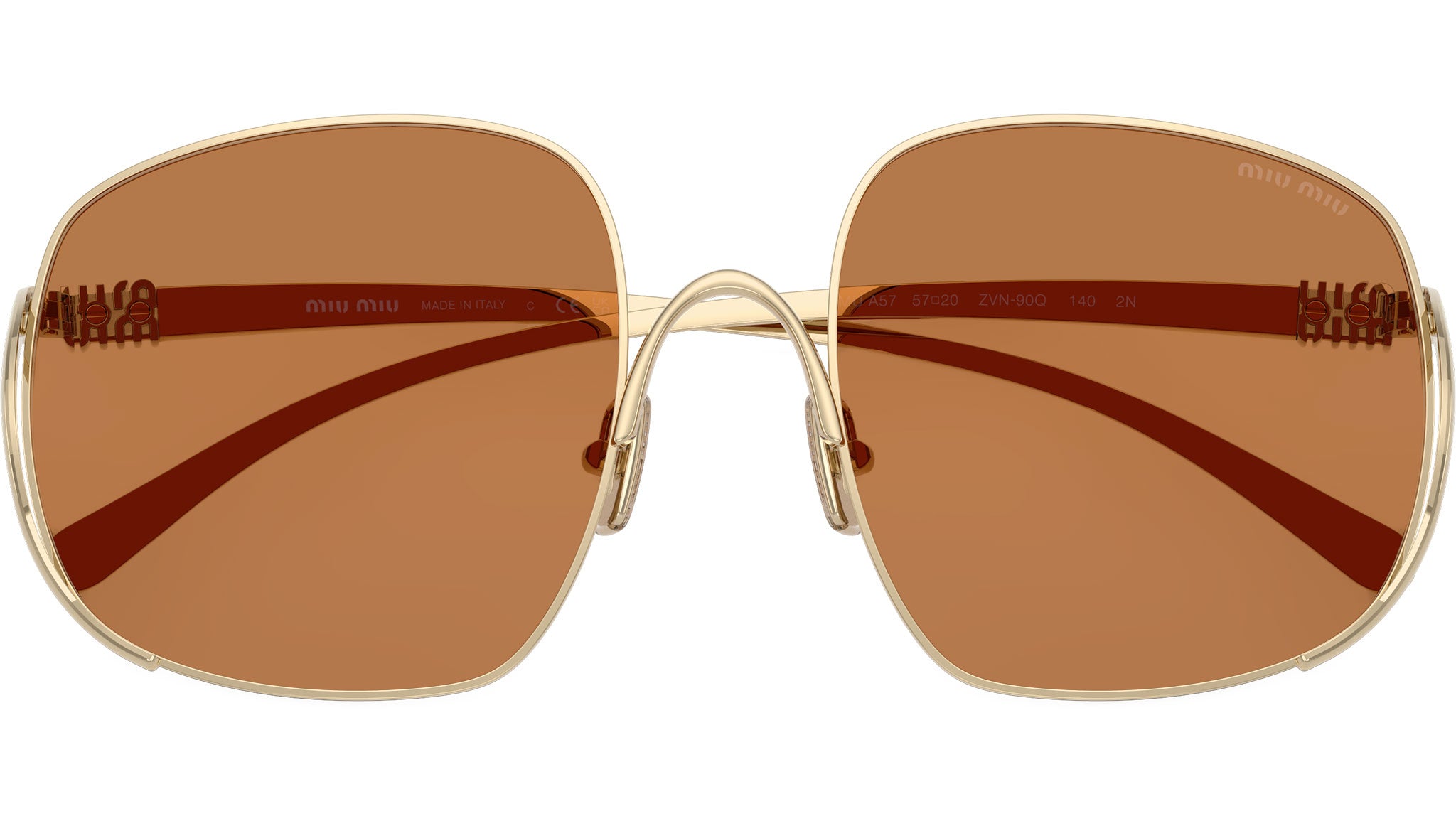 Occhiali da sole Miu Miu MU A57S ZVN90Q donna con montatura quadrata in metallo oro pallido e lenti in bio poliammide color marrone. Naselli regolabili. Linea: Main Collection. Codice modello: 0MU A57S. Codice colore: ZVN90Q. Made in Italy. Rivenditore autorizzato Miu Miu online. Gli occhiali vengono consegnati con custodia e accessori originali e sono coperti dalla garanzia ufficiale di 12 mesi del produttore.