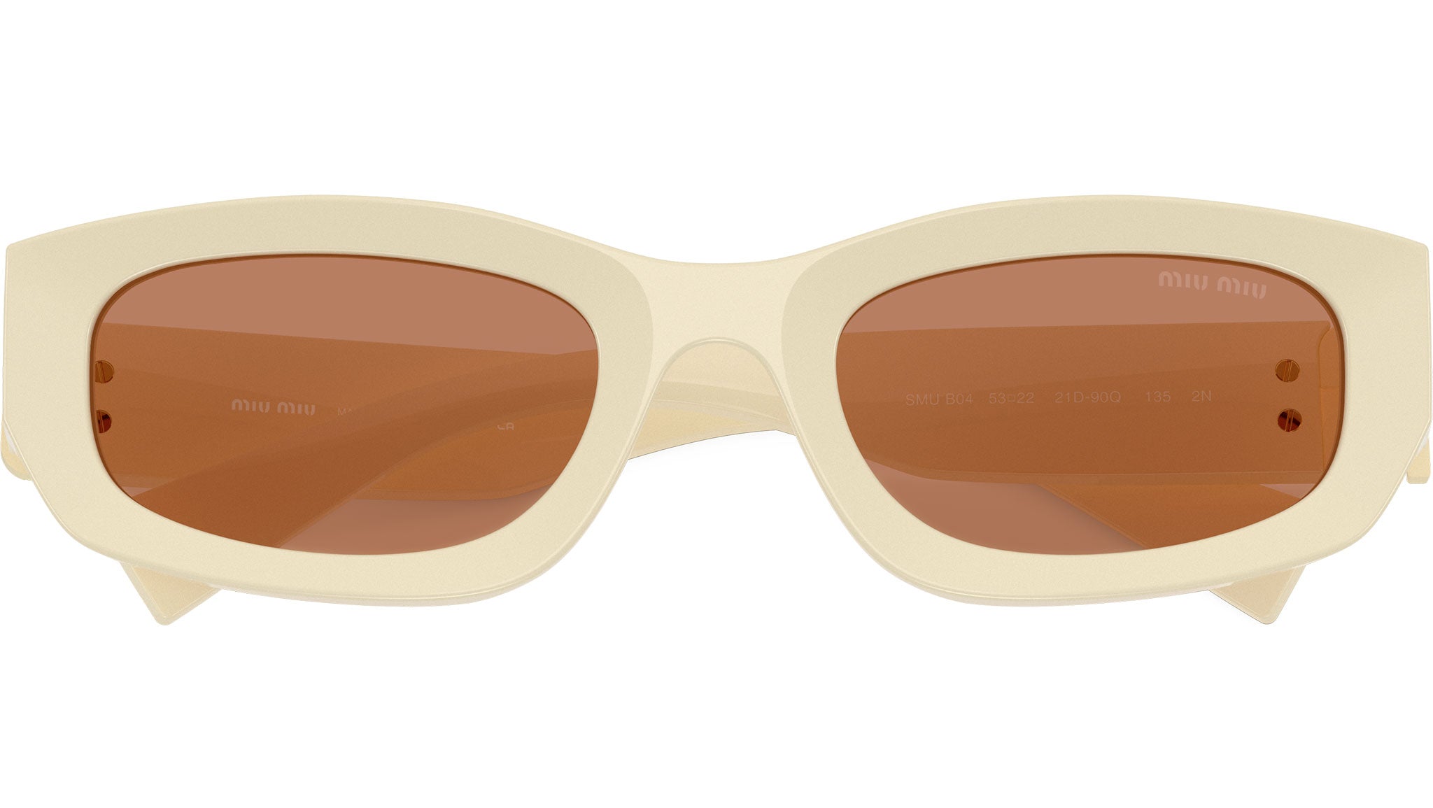 Occhiali da sole Miu Miu MU B04S 21D90Q donna con montatura geometrica in acetato bianco latte e lenti in bio poliammide color marrone. Vestibilità a ponte alto. Linea: Main Collection. Codice modello: 0MU B04S. Codice colore: 21D90Q. Made in Italy. Rivenditore autorizzato Miu Miu online. Gli occhiali vengono consegnati con custodia e accessori originali e sono coperti dalla garanzia ufficiale di 12 mesi del produttore.