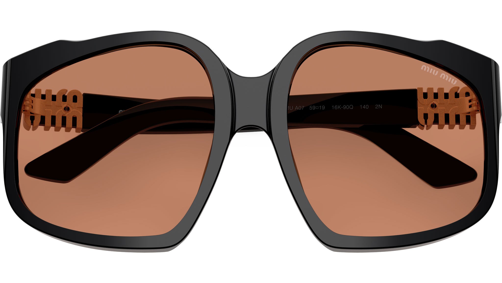 Occhiali da sole Miu Miu MU A07S 16K90Q donna con montatura geometrica in acetato nero e lenti in bio poliammide color marrone. Vestibilità a ponte alto. Linea: Fashion Show. Codice modello: 0MU A07S. Codice colore: 16K90Q. Made in Italy. Rivenditore autorizzato Miu Miu online. Gli occhiali vengono consegnati con custodia e accessori originali e sono coperti dalla garanzia ufficiale di 12 mesi del produttore.