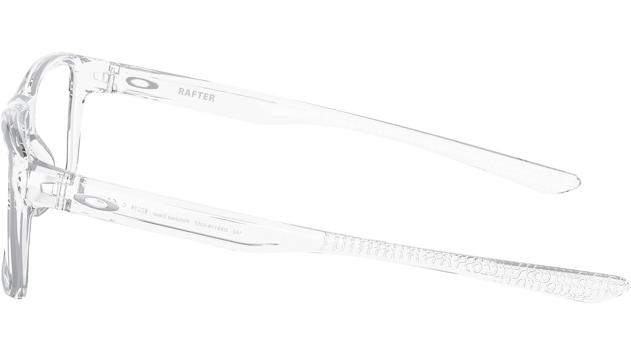 Occhiali da vista Oakley Rafter uomo modello OX8178 con montatura full rim in nylon trasparente lucido e lenti demo. Vestibilità universale. Linea: Performance Lifestyle. Codice modello: 0OX8178. Codice colore: 03. Rivenditore autorizzato online Oakley. Gli occhiali includono la custodia e gli accessori originali e sono coperti da garanzia globale di 12 mesi del produttore.