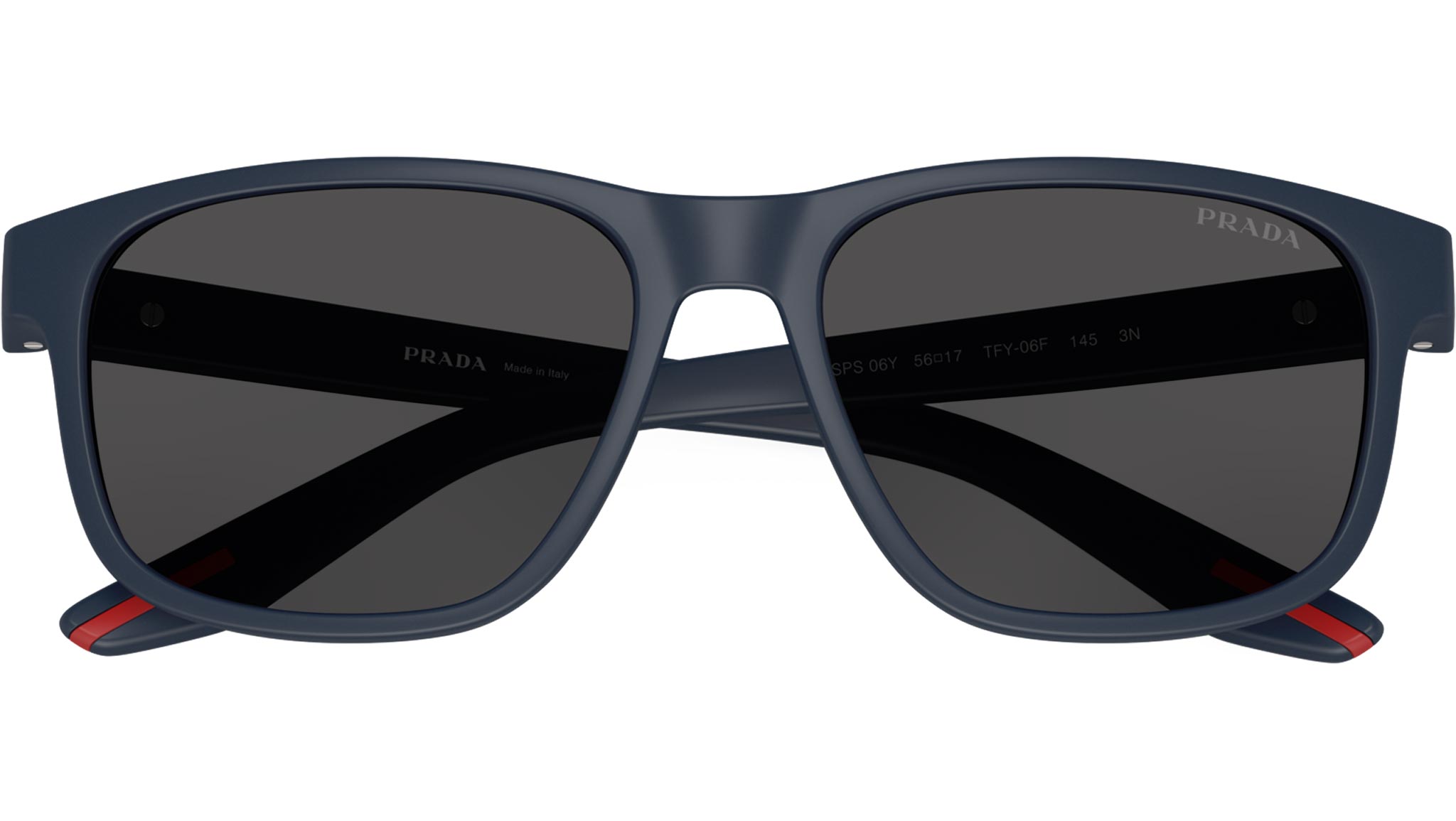 Occhiali da sole Prada Linea Rossa PS 06YS TFY06F uomo con montatura d-frame in iniettato blu gommato e lenti in poliammide color grigio scuro. Vestibilità a ponte alto. Linea: Active. Codice modello: PS06YS. Codice colore: TFY06F. Made in Italy. Rivenditore autorizzato Prada Sport online. Gli occhiali vengono consegnati con custodia e accessori originali e sono coperti dalla garanzia ufficiale di 12 mesi del produttore.
