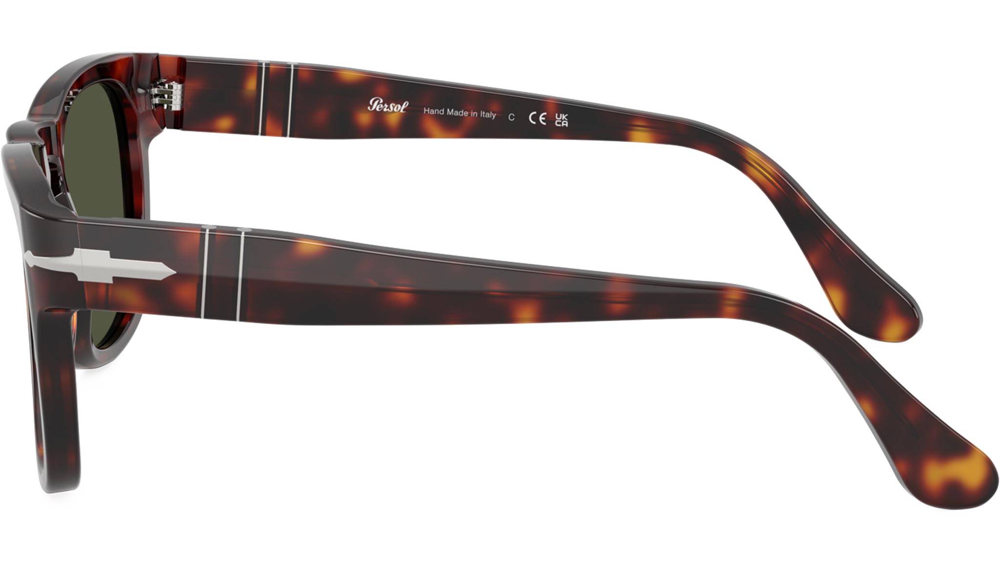 Occhiali da sole Persol unisex modello PO3333S 24/31 con montatura squadrata in acetato avana e lenti in cristallo verde base 6. Vestibilità a ponte alto. Linea: Icona Galleria. Codice Brand: 0PO3333S. Codice colore: 24/31. Rivenditore autorizzato online Persol Eyewear. Ogni prodotto Persol viene consegnato con astuccio originale e accessori ed è coperto da garanzia del produttore di 12 mesi.