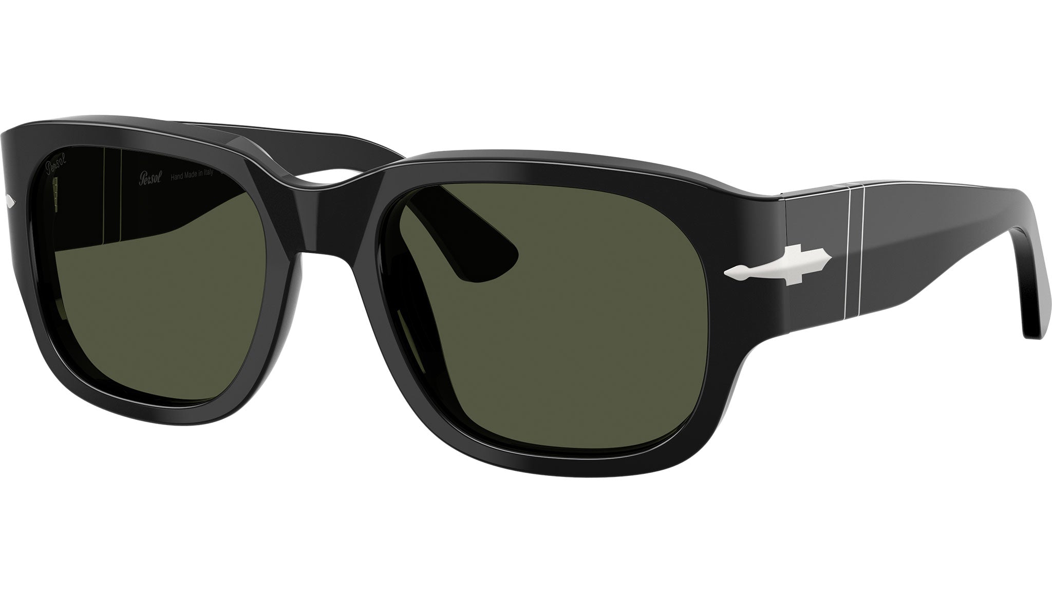 Occhiali da sole Persol unisex modello PO3380S 95/31 con montatura squadrata in acetato nero e lenti in cristallo verde base 6. Vestibilità a ponte alto. Linea: Sartoria. Codice Brand: 0PO3380S. Codice colore: 95/31. Rivenditore autorizzato online Persol Eyewear. Ogni prodotto Persol viene consegnato con astuccio originale e accessori ed è coperto da garanzia del produttore di 12 mesi.
