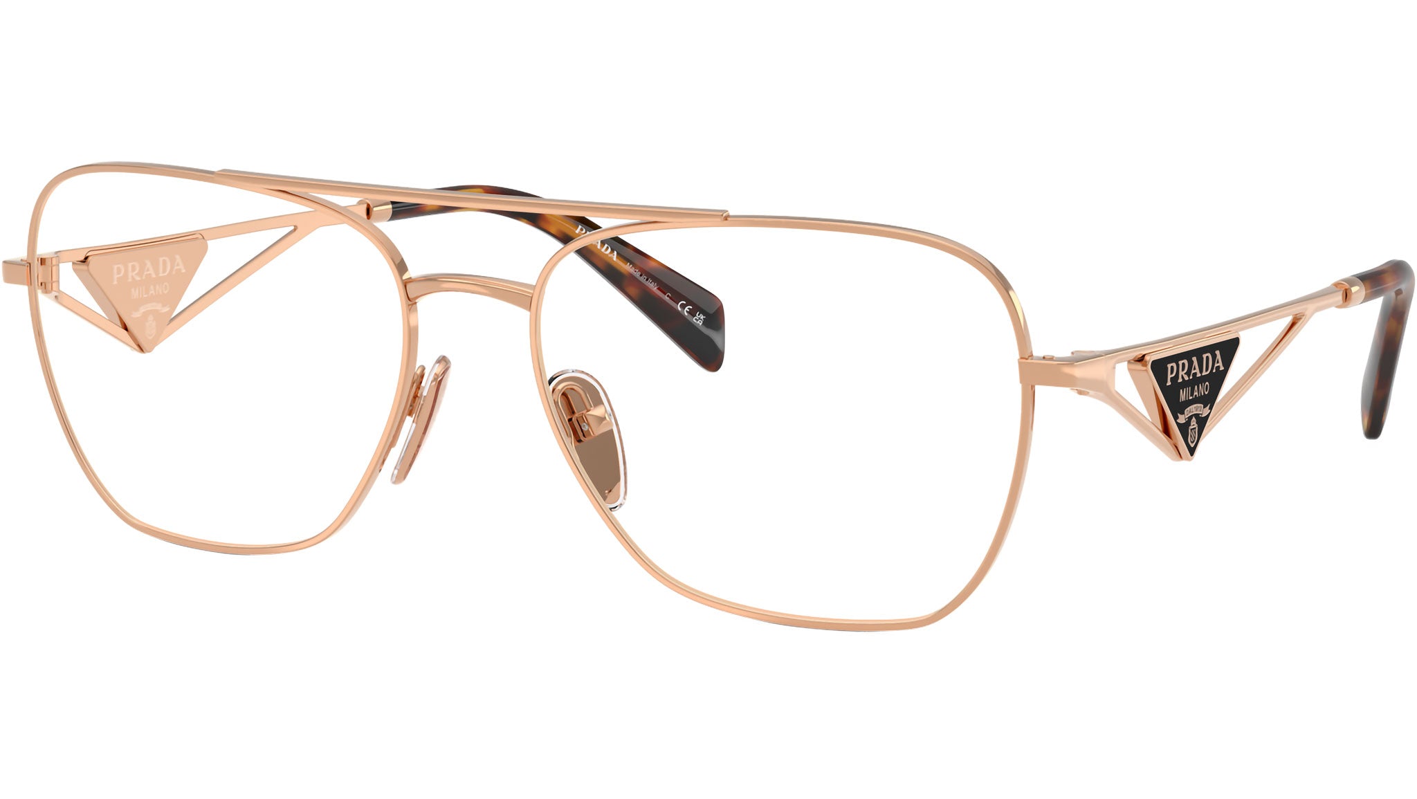 Occhiali da vista Prada PR B50V SVF1O1 donna con montatura aviatore in acciaio oro rosa e lenti demo. Naselli regolabili. Linea: Catwalk. Codice modello: PRB50V. Codice colore: SVF1O1. Made in Italy. Rivenditore autorizzato Prada online. Gli occhiali vengono consegnati con custodia e accessori originali e sono coperti dalla garanzia ufficiale di 12 mesi del produttore.