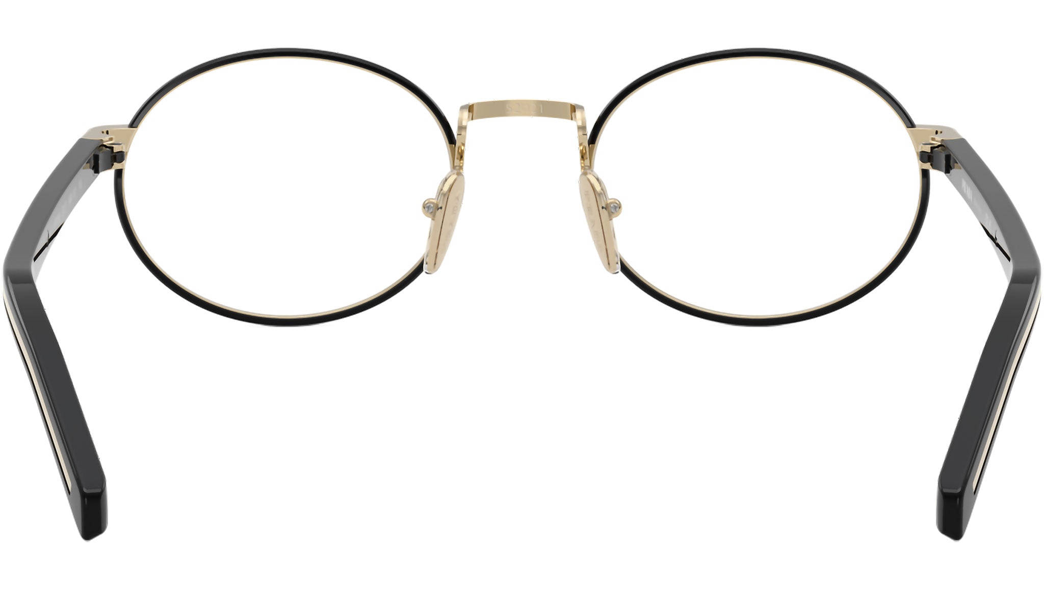 Occhiali da vista Prada PR B55V AAV1O1 donna con montatura ovale in metallo oro chiaro / nero e lenti demo. Naselli regolabili. Linea: Signature. Codice modello: PRB55V. Codice colore: AAV1O1. Made in Italy. Rivenditore autorizzato Prada online. Gli occhiali vengono consegnati con custodia e accessori originali e sono coperti dalla garanzia ufficiale di 12 mesi del produttore.