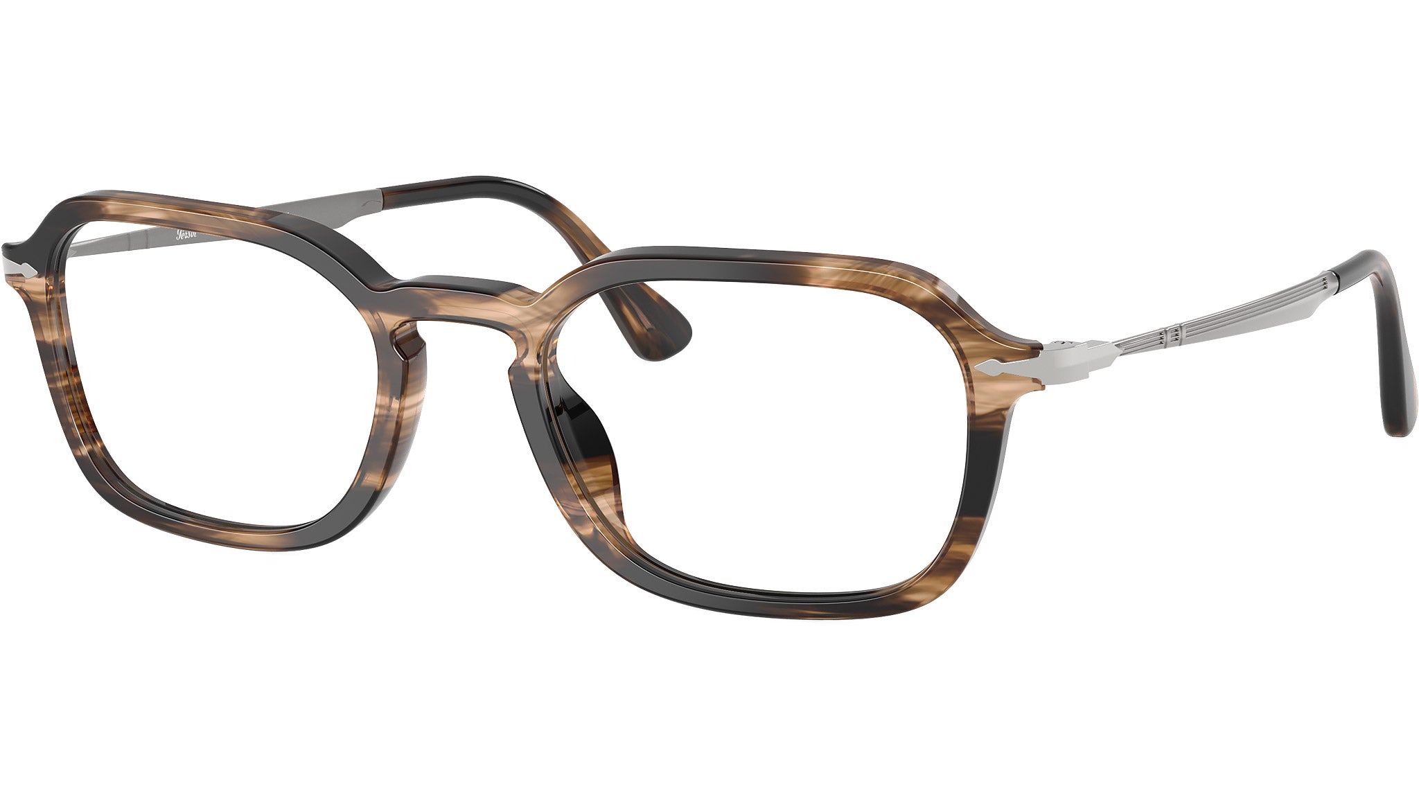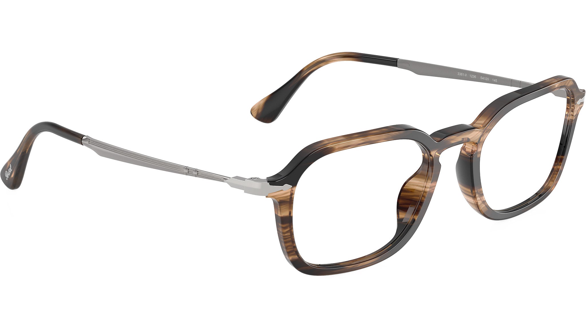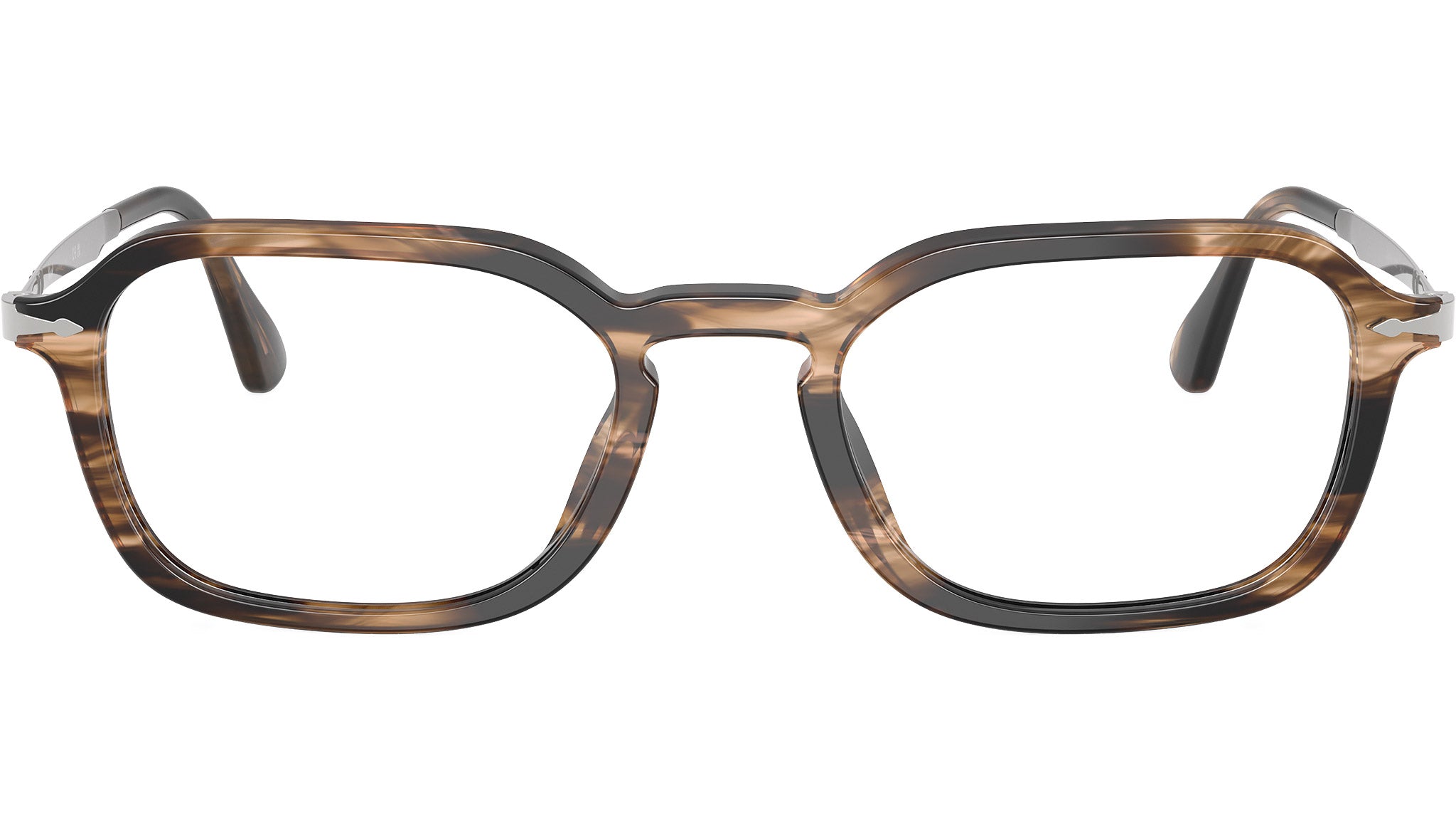 Montatura per occhiali da vista Persol unisex modello PO3381V 1236 con montatura d-frame in acetato nero striato e marrone grigiastro e lenti demo. Linea: Galleria. Codice Brand: 0PO3381V. Codice colore: 1236. Rivenditore autorizzato online Persol Eyewear. Ogni prodotto Persol viene consegnato con astuccio originale e accessori ed è coperto da garanzia del produttore di 12 mesi.