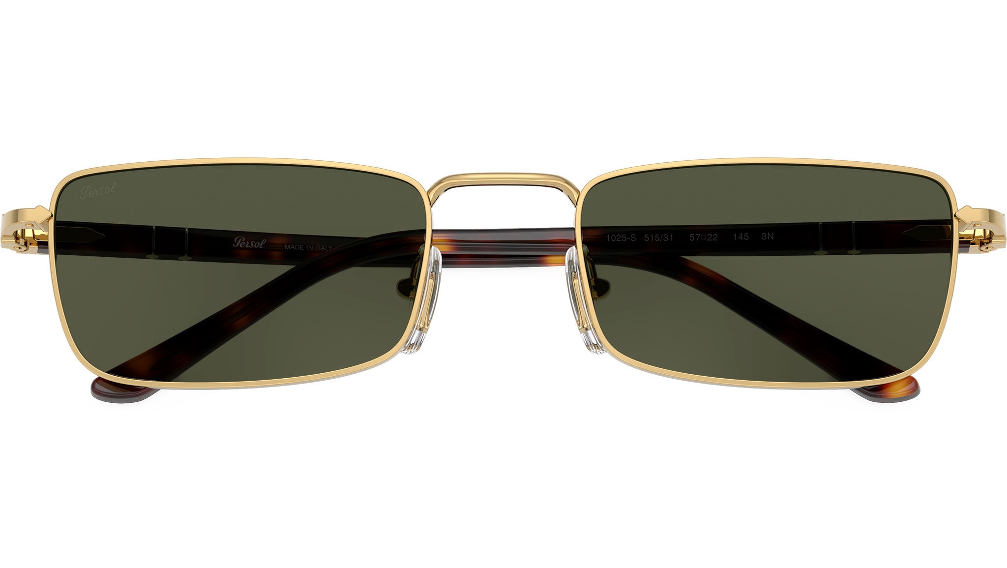Occhiali da sole Persol unisex modello PO1025S 515/31 con montatura rettangolare in metallo oro e lenti in cristallo verde base 2.5. Naselli regolabili. Linea: Sartoria. Codice Brand: 0PO1025S. Codice colore: 515/31. Rivenditore autorizzato online Persol Eyewear. Ogni prodotto Persol viene consegnato con astuccio originale e accessori ed è coperto da garanzia del produttore di 12 mesi.