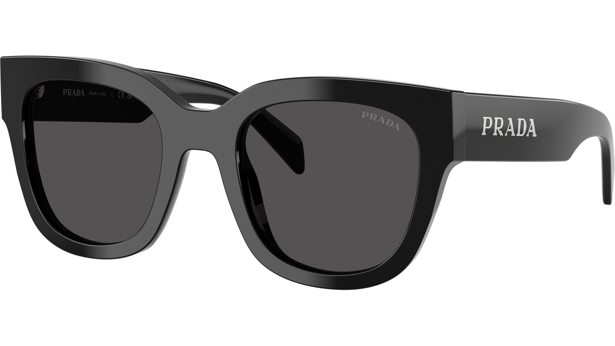 Occhiali da sole Prada PR C04S 16K08Z donna con montatura squadrata in acetato nero e lenti in bio poliammide color grigio scuro. Vestibilità a ponte alto. Linea: Essential. Codice modello: PRC04S. Codice colore: 16K08Z. Made in Italy. Rivenditore autorizzato Prada online. Gli occhiali vengono consegnati con custodia e accessori originali e sono coperti dalla garanzia ufficiale di 12 mesi del produttore.