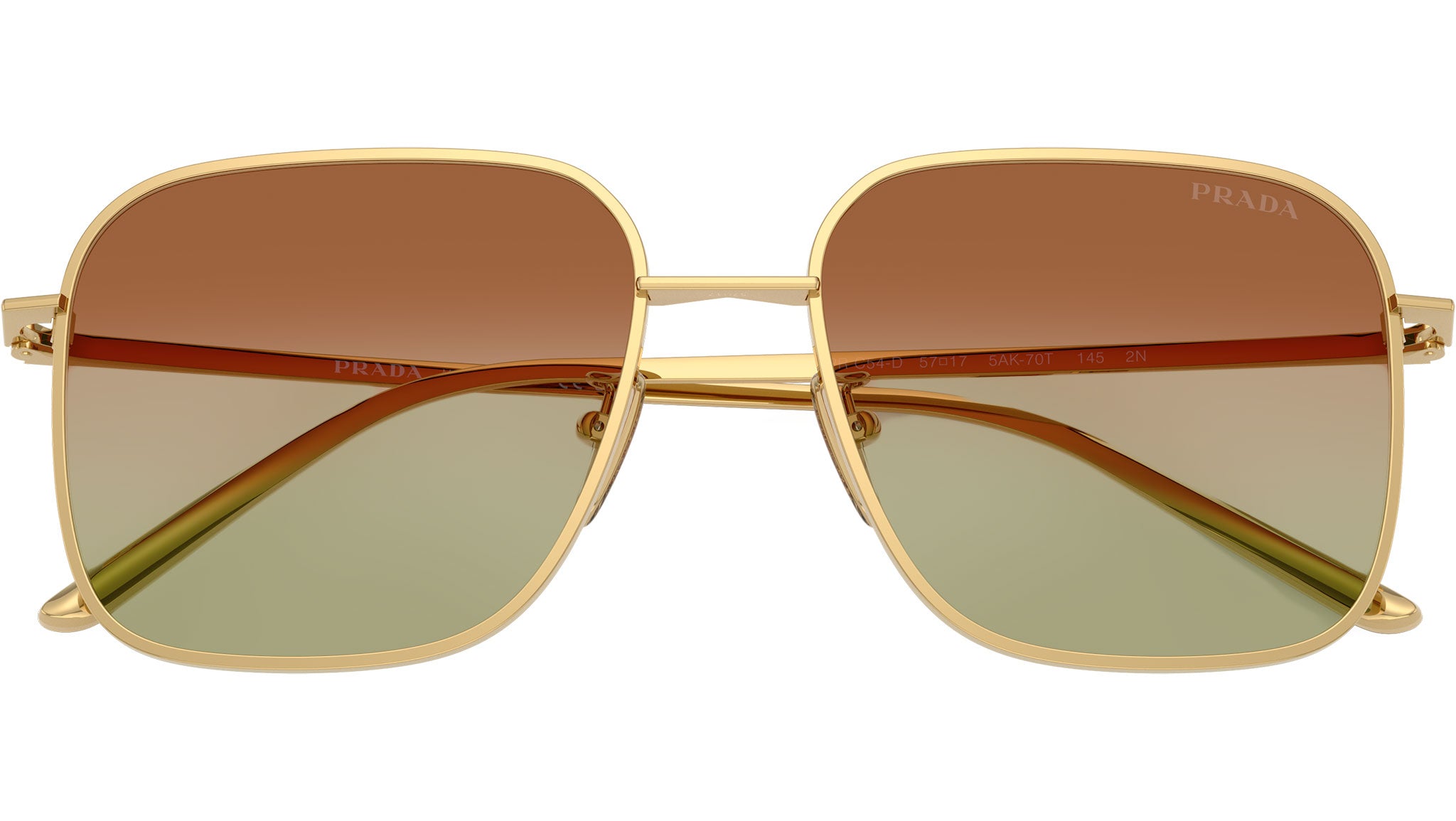Occhiali da sole Prada PR C54SD 5AK70T donna con montatura squadrata in metallo oro e lenti in bio poliammide color verde / marrone. Vestibilità a ponte basso. Linea: Essential. Codice modello: PRC54SD. Codice colore: 5AK70T. Made in Italy. Rivenditore autorizzato Prada online. Gli occhiali vengono consegnati con custodia e accessori originali e sono coperti dalla garanzia ufficiale di 12 mesi del produttore.