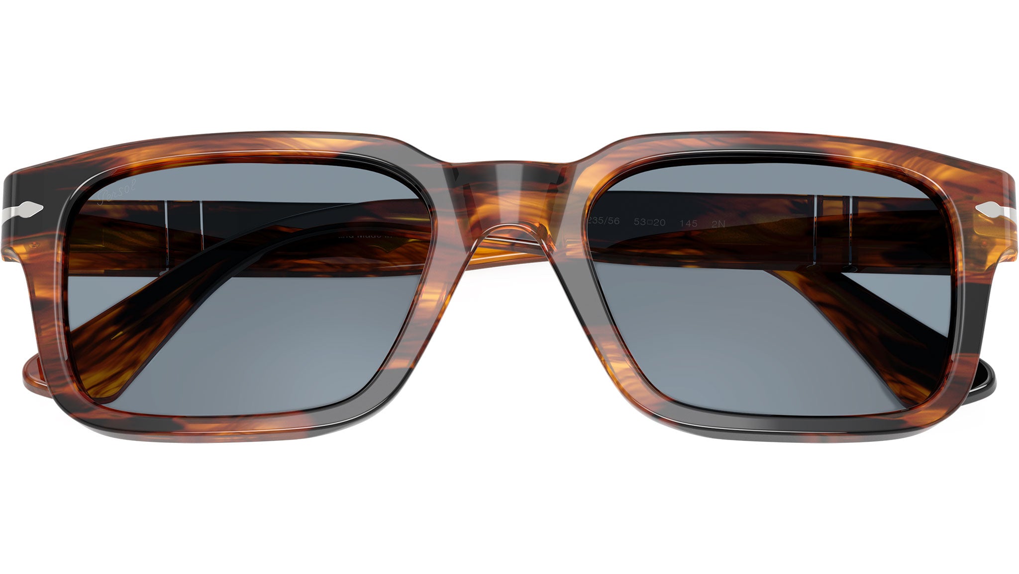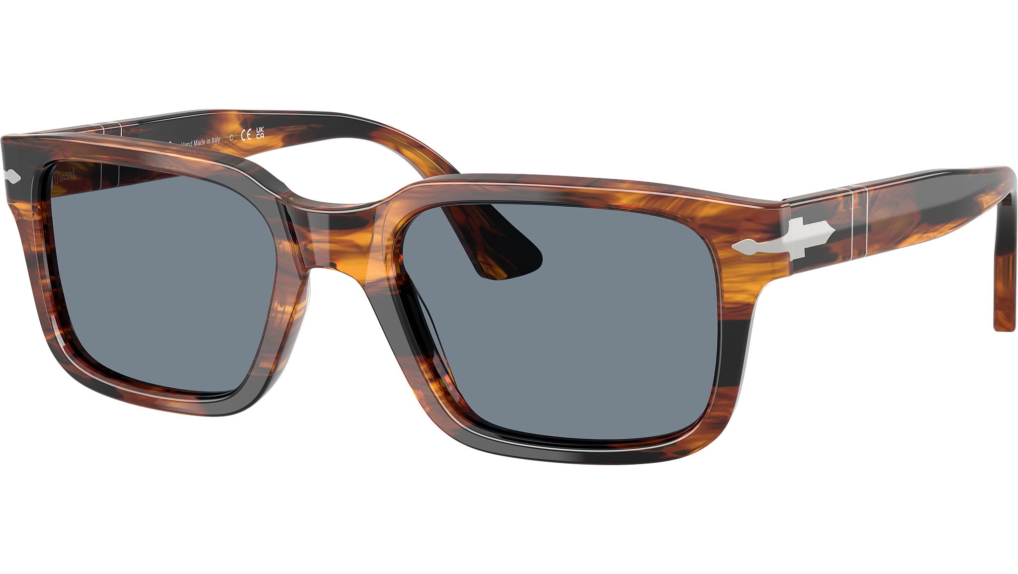 Occhiali da sole Persol uomo modello PO3272S 123556 con montatura rettangolare in acetato nero striato e marrone e lenti in cristallo azzurro base 6. Vestibilità a ponte alto. Linea: Officina. Codice Brand: 0PO3272S. Codice colore: 123556. Rivenditore autorizzato online Persol Eyewear. Ogni prodotto Persol viene consegnato con astuccio originale e accessori ed è coperto da garanzia del produttore di 12 mesi.
